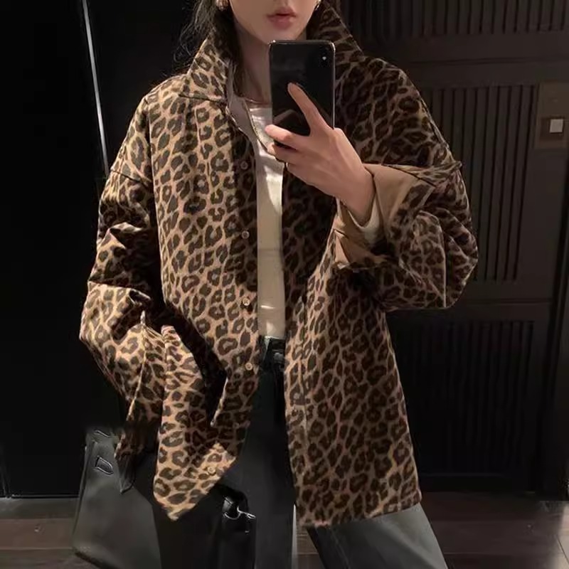 아메리칸 스타일 레트로 레오파드 무늬 재킷 여성의 가을 새로운 캐주얼 느슨한 긴 소매 데님 코튼 셔츠 한국 스타일 재킷 탑스토어 가기
