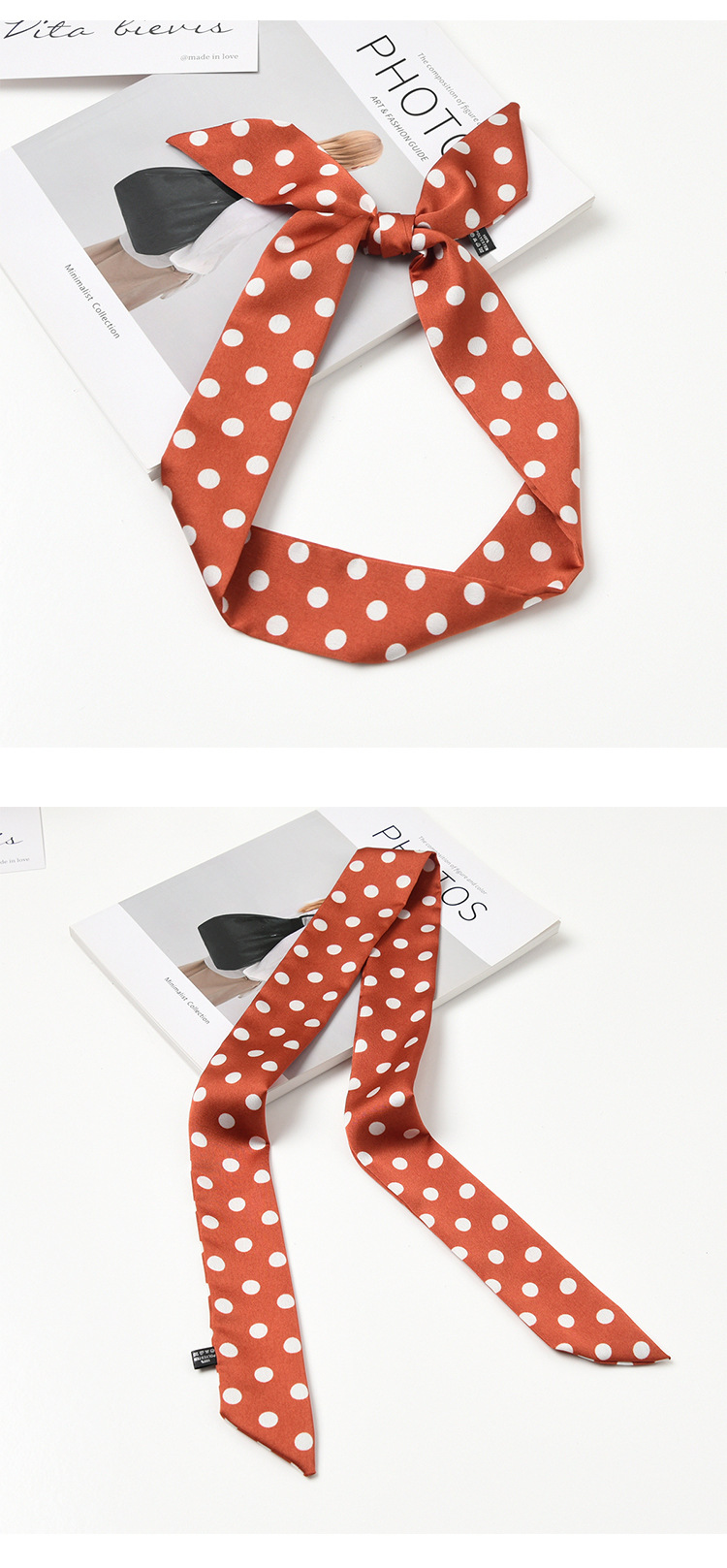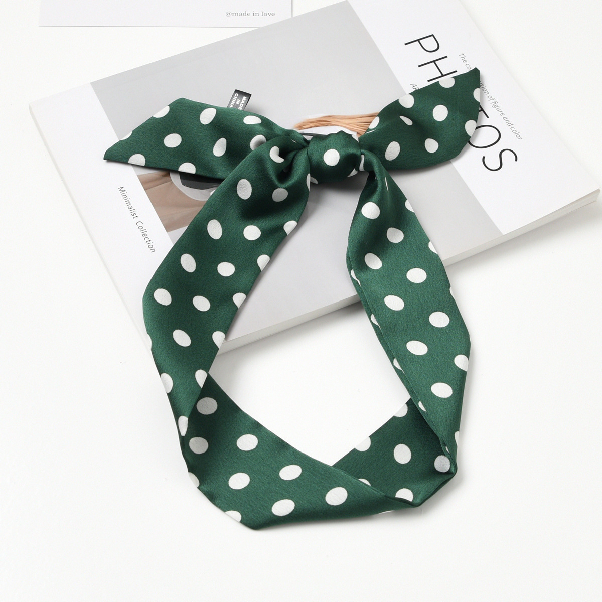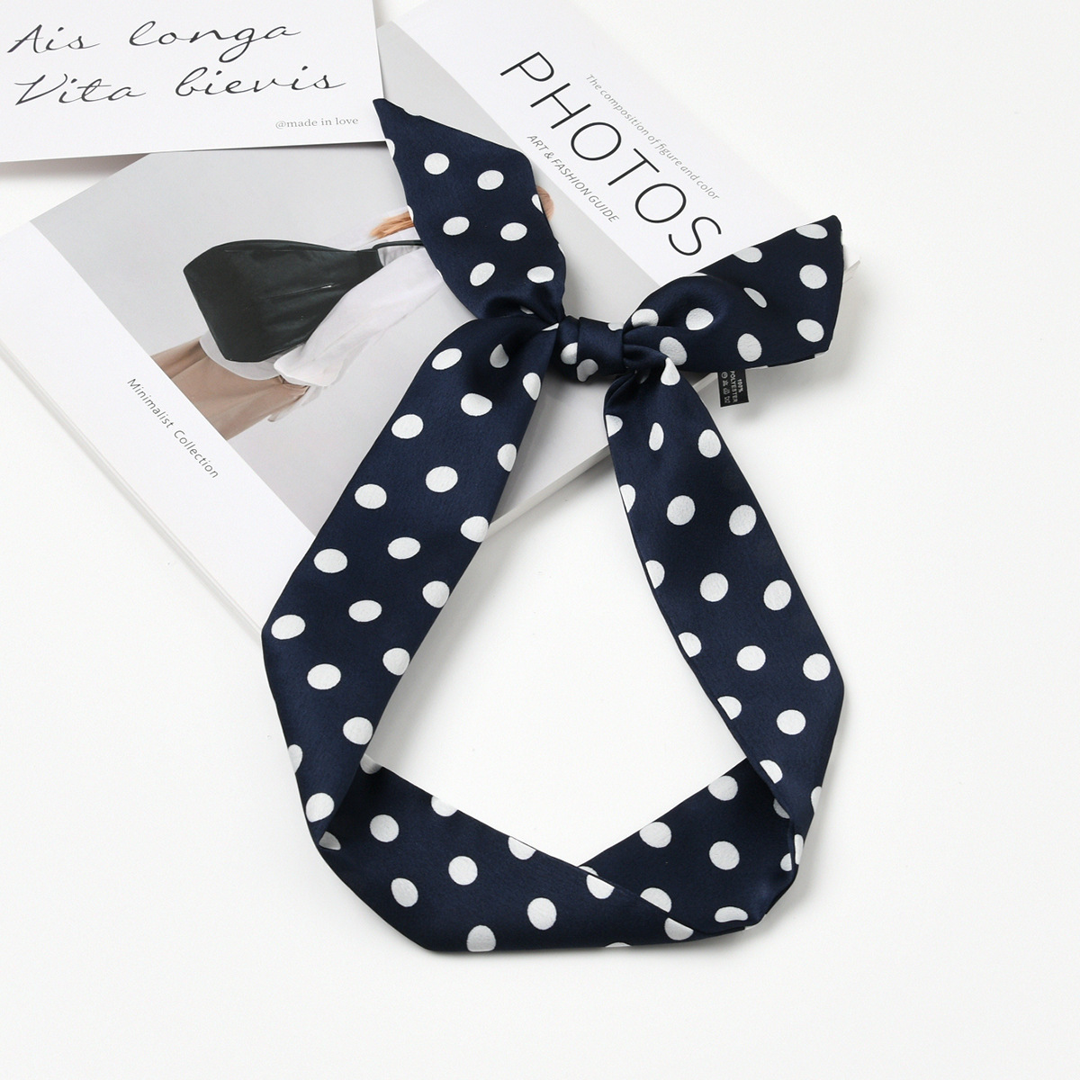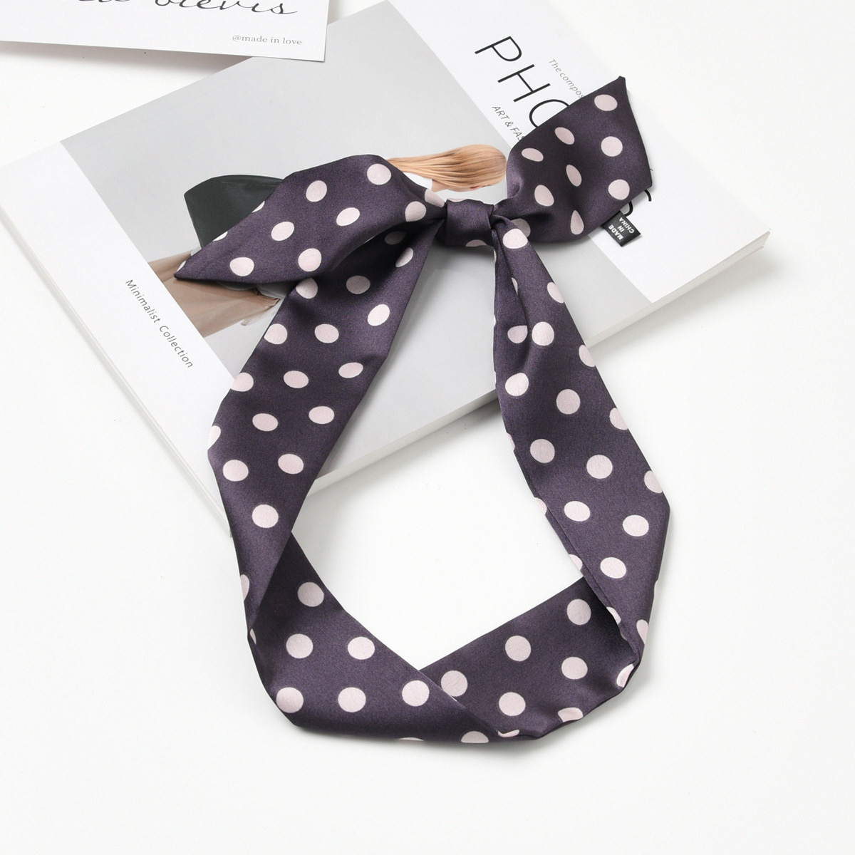 레트로 폴트 도트 스카프 여성의 얇은 좁은 긴 하이 엔드 스카프 프랑스 스타일 올 매치 헤어 밴드 우아한 스카프 타이 백 리본
