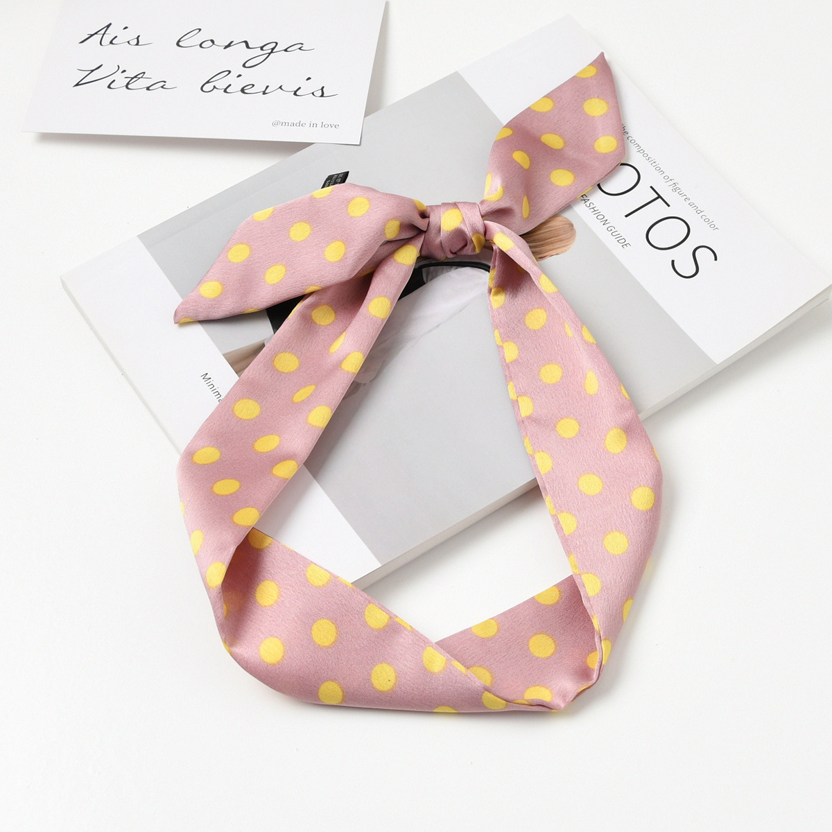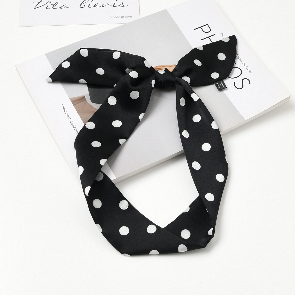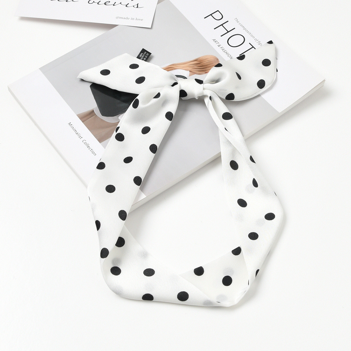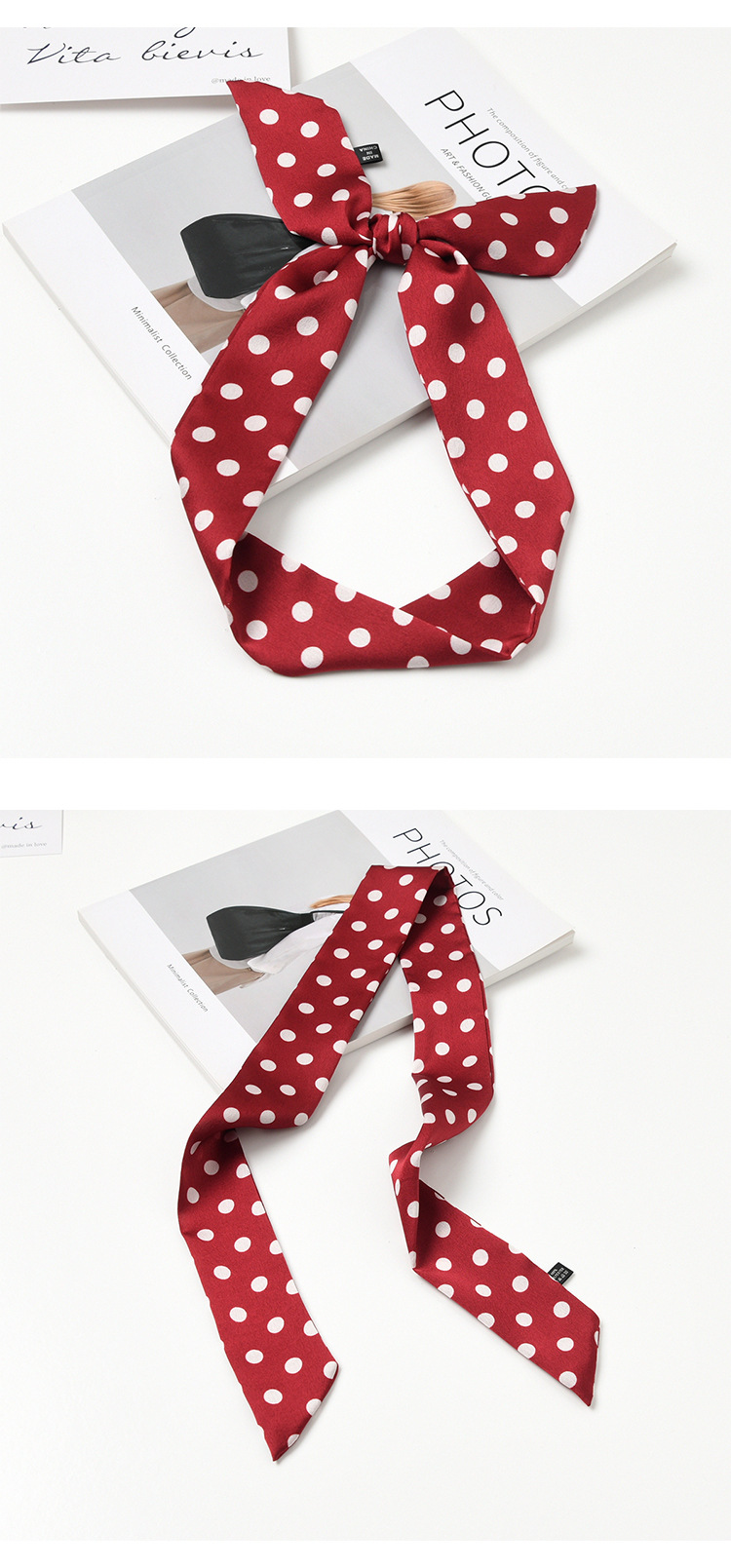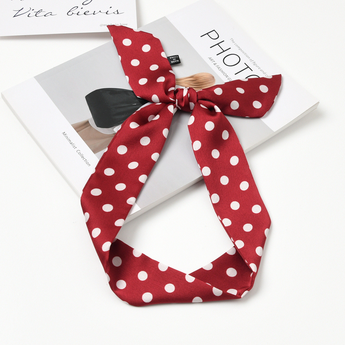 레트로 폴트 도트 스카프 여성의 얇은 좁은 긴 하이 엔드 스카프 프랑스 스타일 올 매치 헤어 밴드 우아한 스카프 타이 백 리본