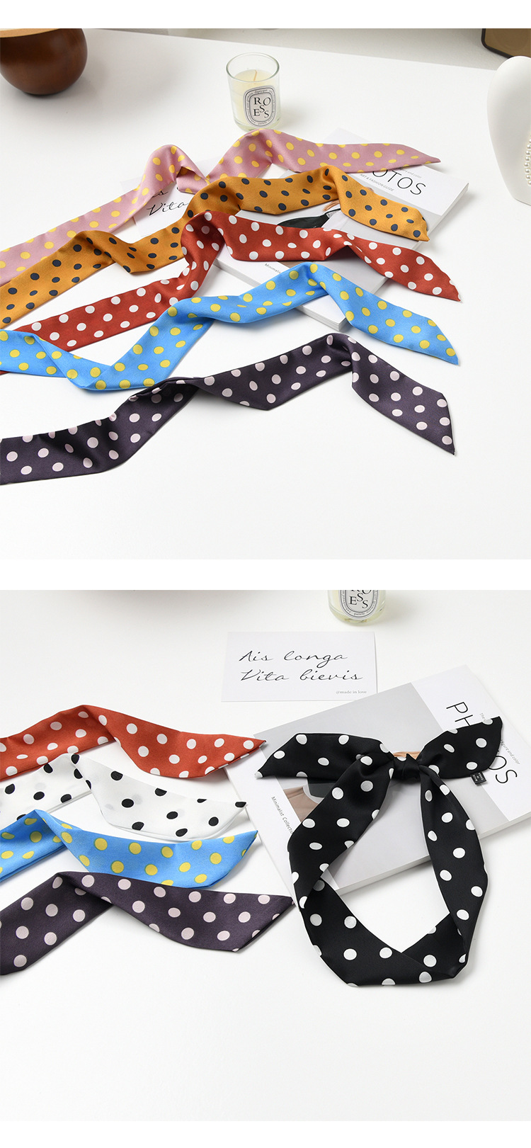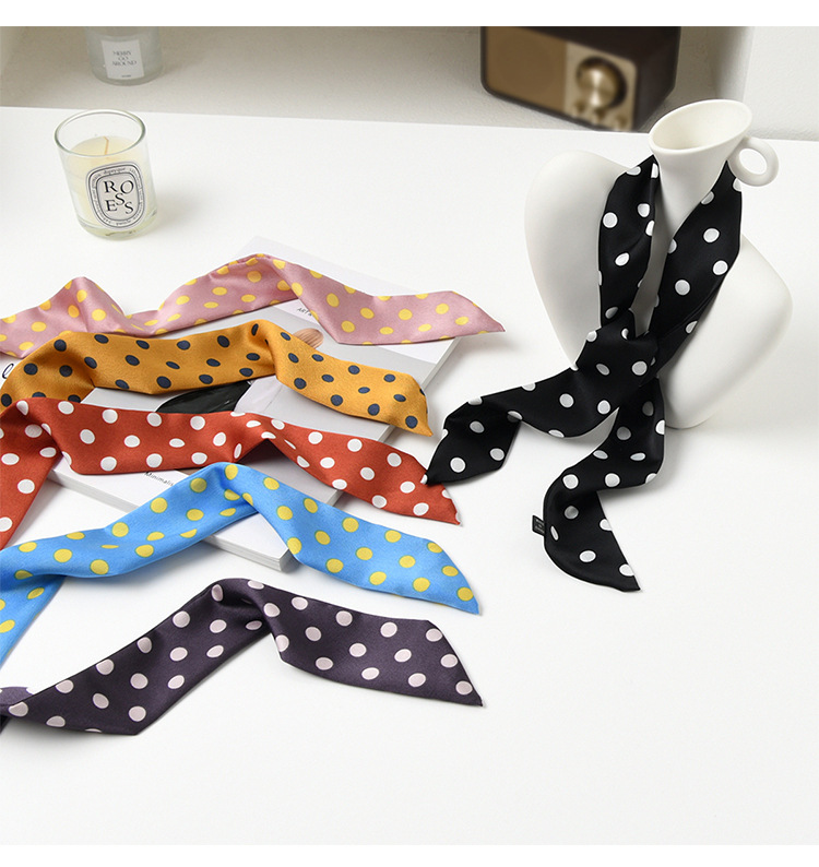 레트로 폴트 도트 스카프 여성의 얇은 좁은 긴 하이 엔드 스카프 프랑스 스타일 올 매치 헤어 밴드 우아한 스카프 타이 백 리본스토어 가기
