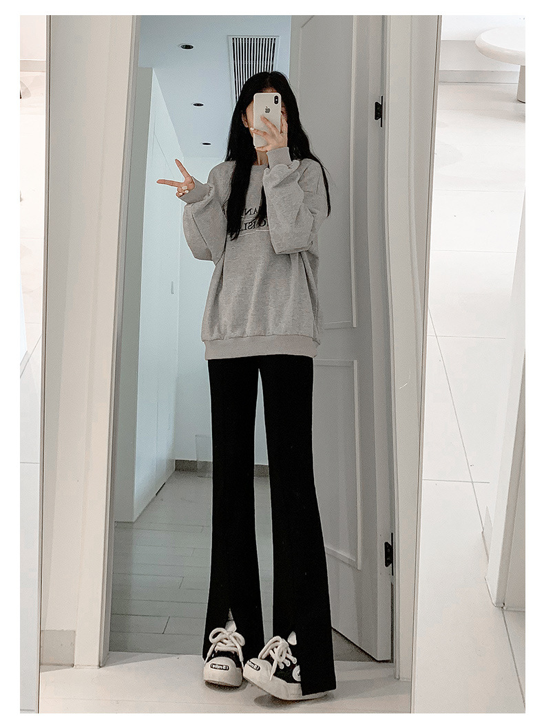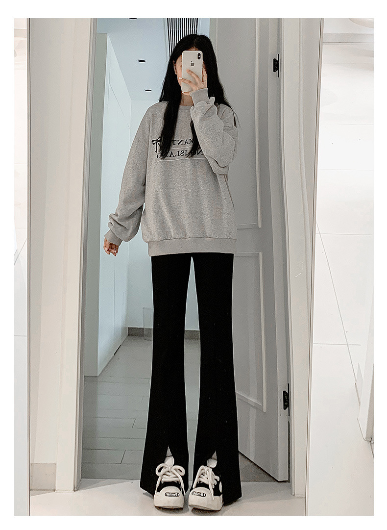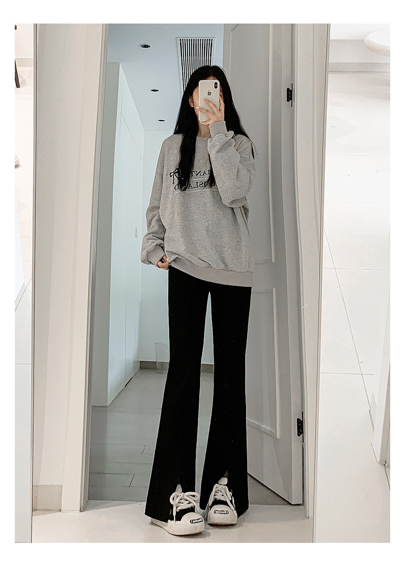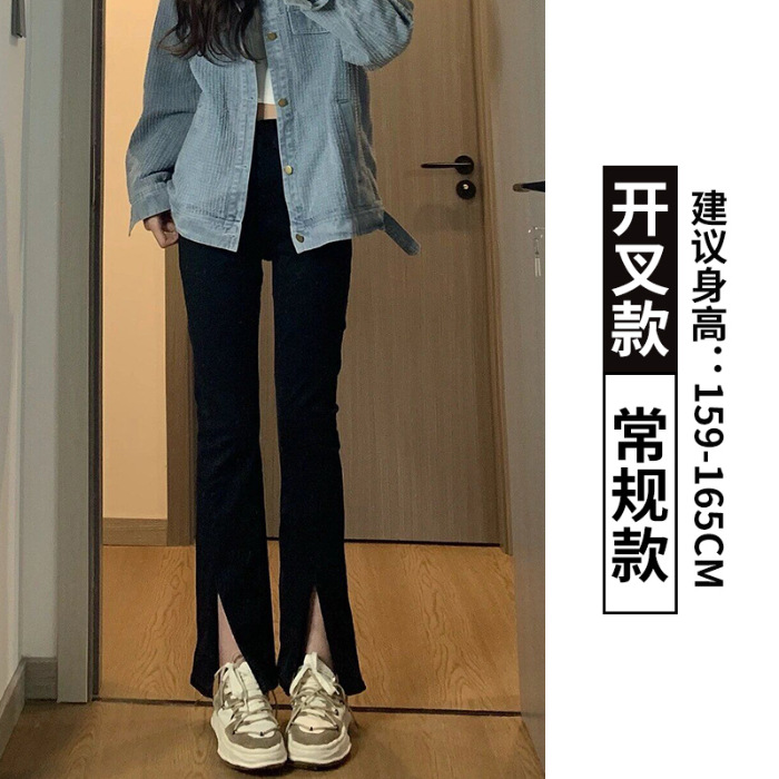검은 분할 바지 여성의 봄과 가을 미국 새로운 높은 허리 슬리밍 작은 여성을위한 말굽 바지스토어 가기