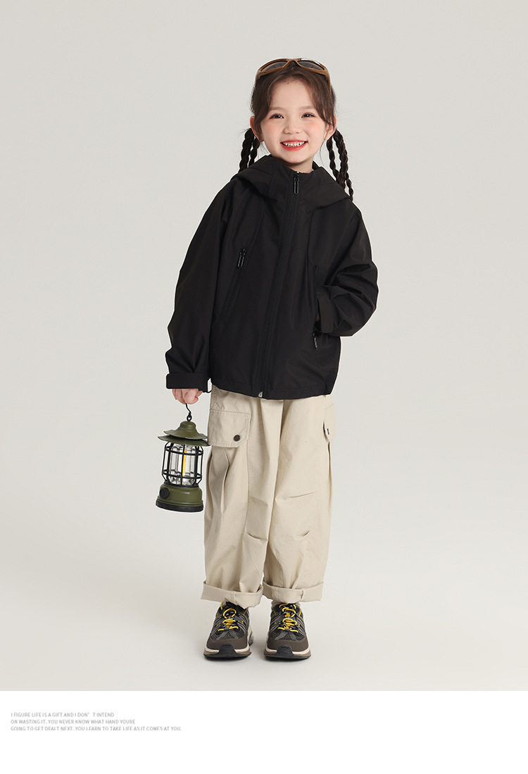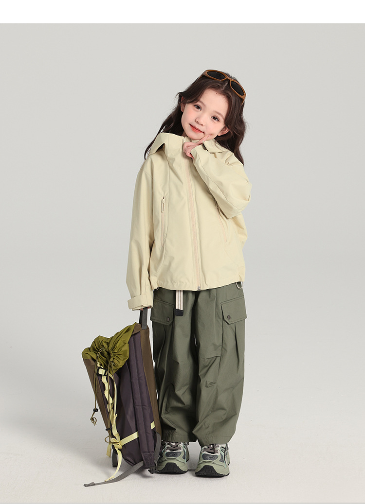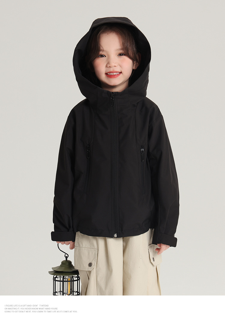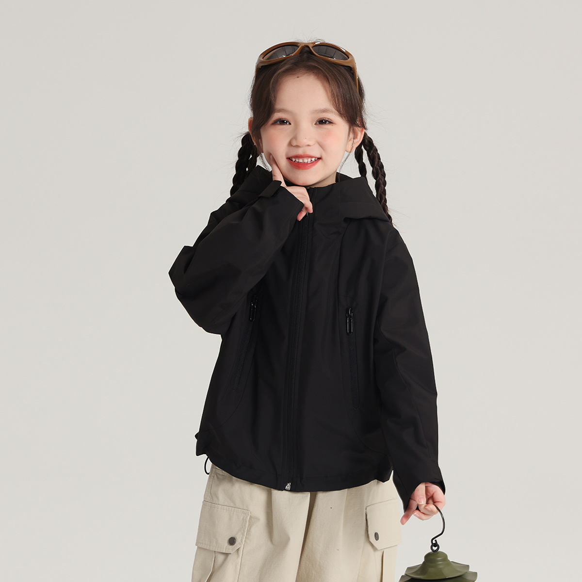 푸딩하루 아동용 재킷 2025 가을 신상 여아용 삼중 방수 후드 재킷 패셔너블하고 다재다능한 단색 상의
