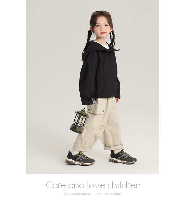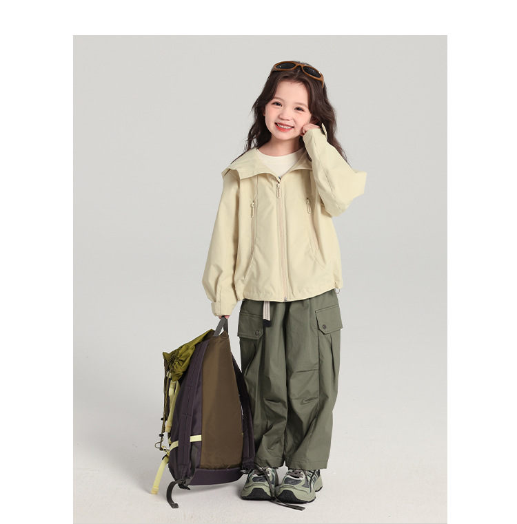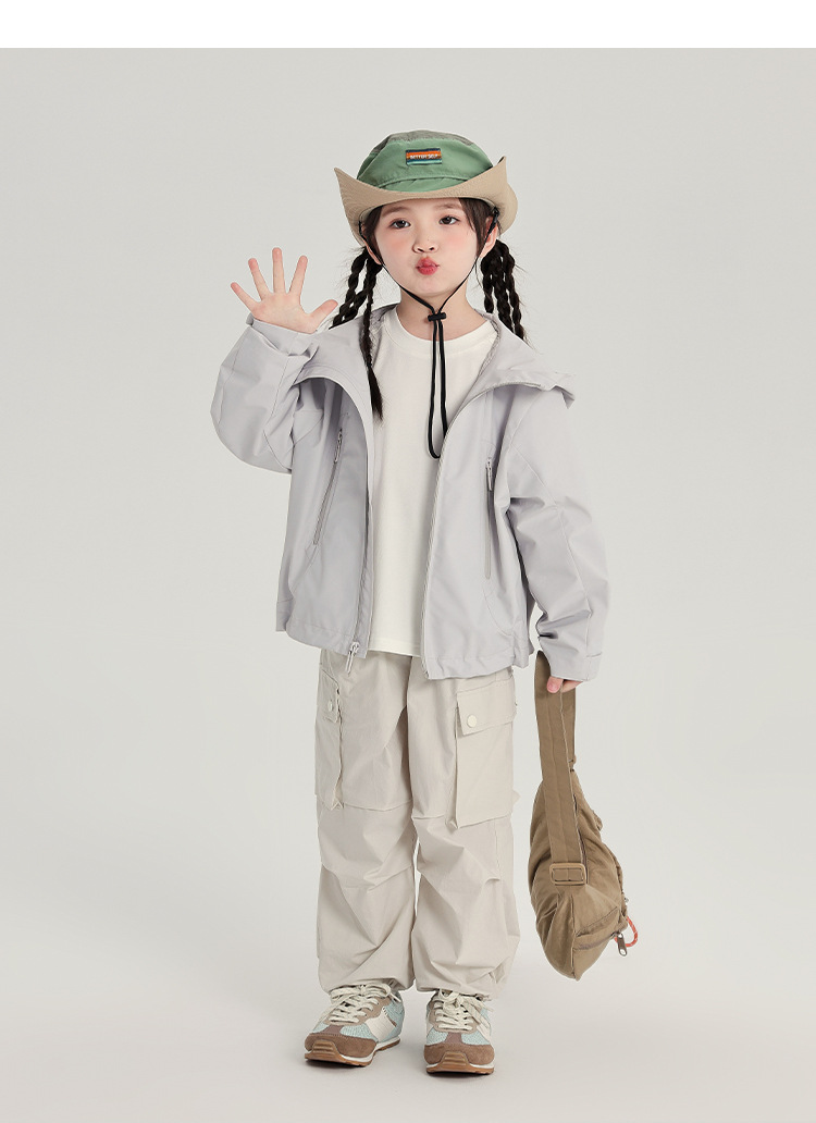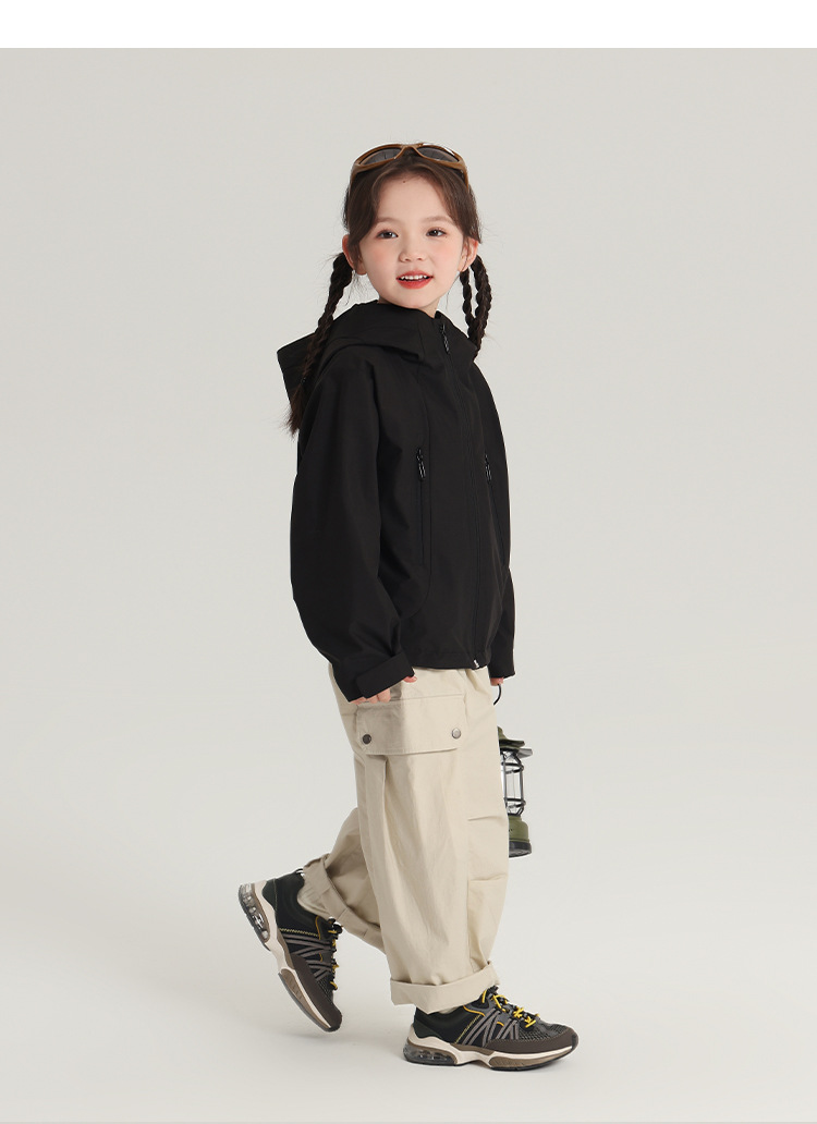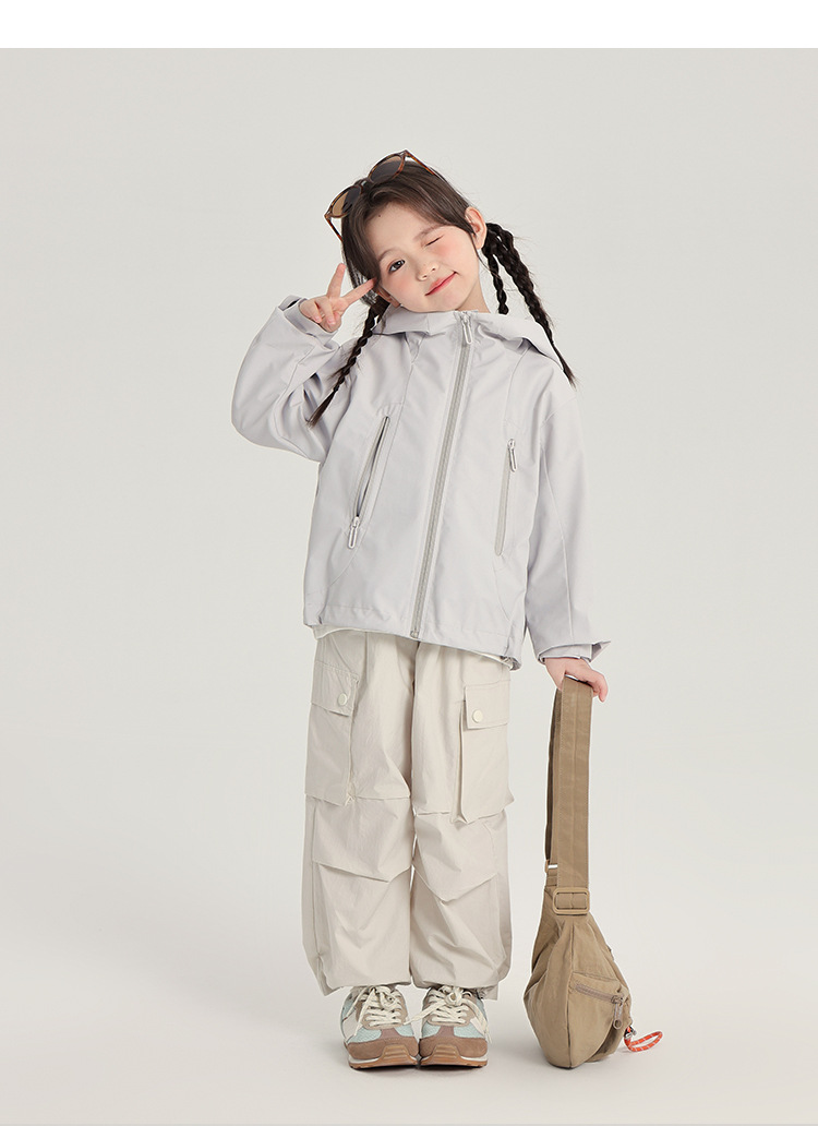 푸딩하루 아동용 재킷 2025 가을 신상 여아용 삼중 방수 후드 재킷 패셔너블하고 다재다능한 단색 상의