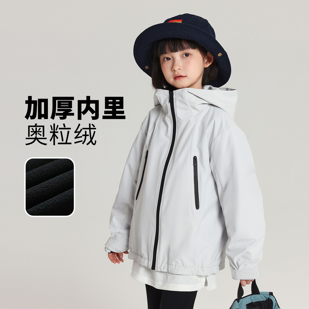 푸딩하루 아동용 재킷 2025 가을 신상 여아용 삼중 방수 후드 재킷 패셔너블하고 다재다능한 단색 상의스토어 가기