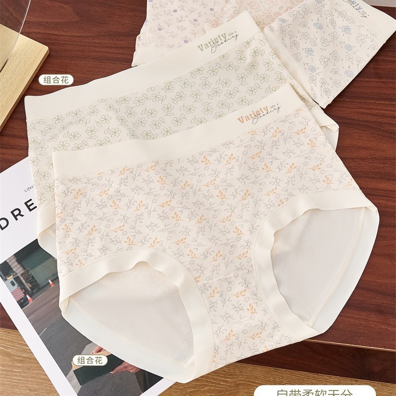 2025 새로운 스타일의 미니 속옷 여성의 목가적 인 꽃 중반 허리 엉덩이 피부 친화적 인 편안한 통기성 브리프스토어 가기