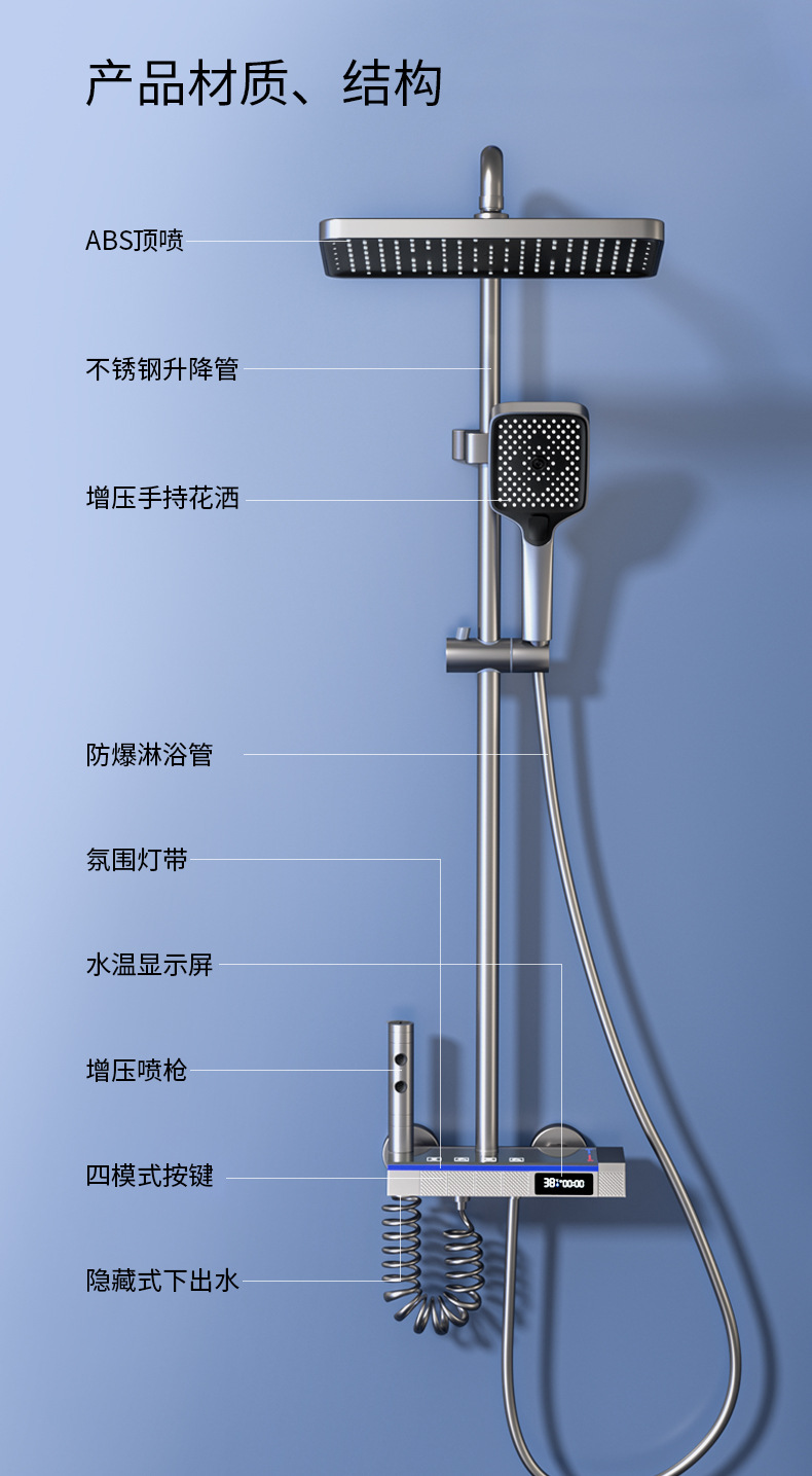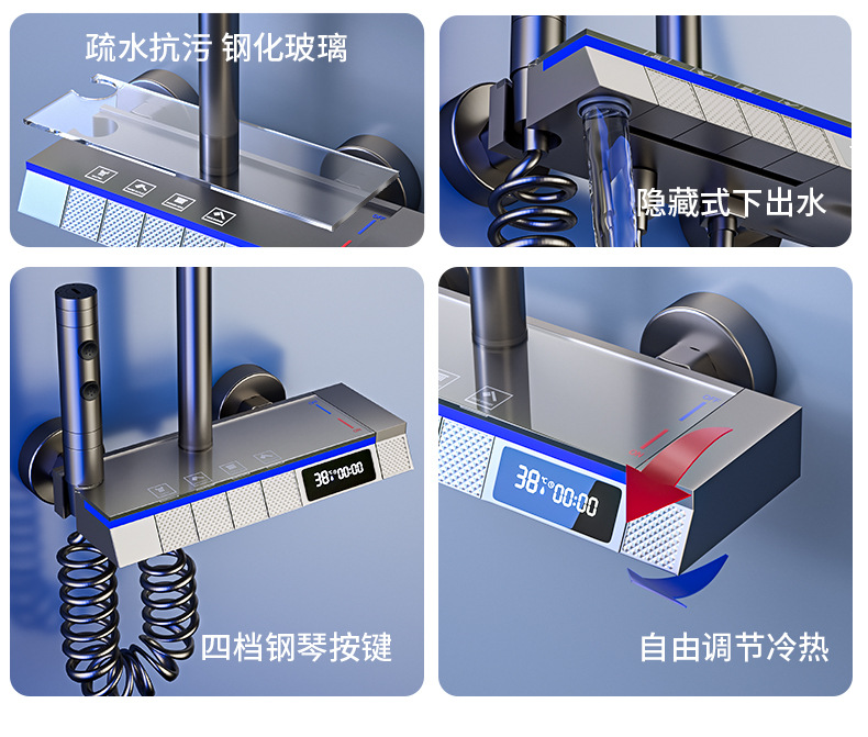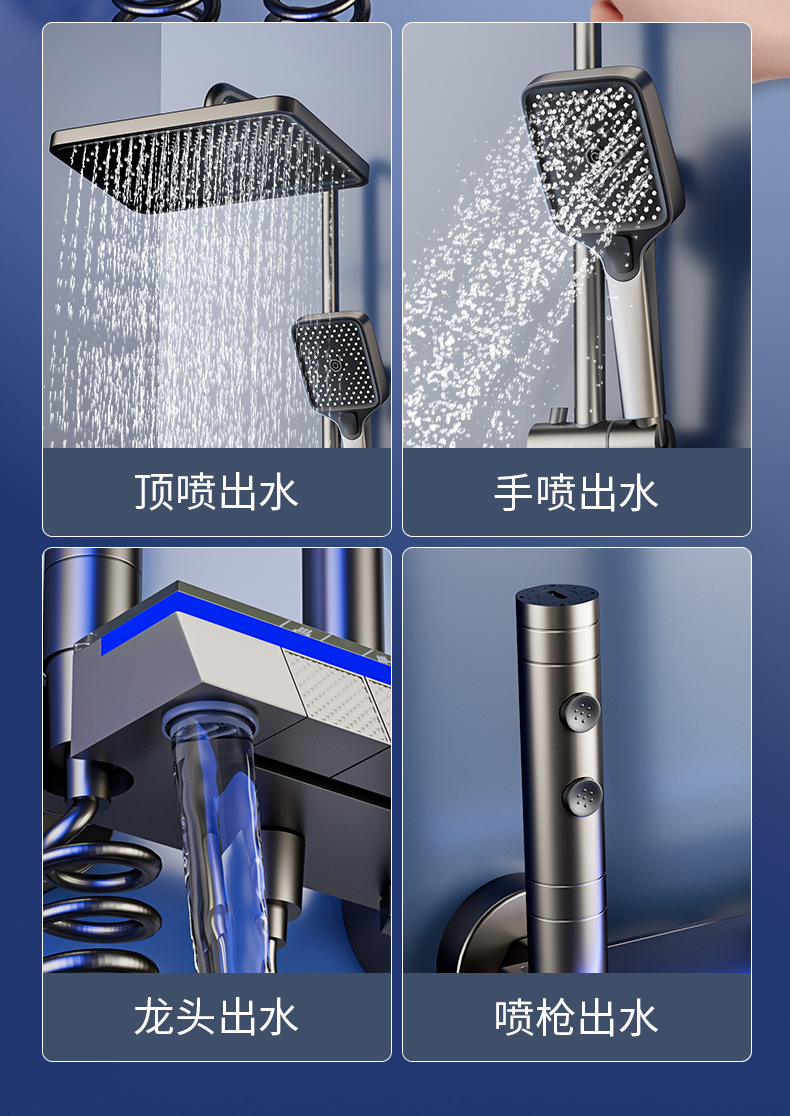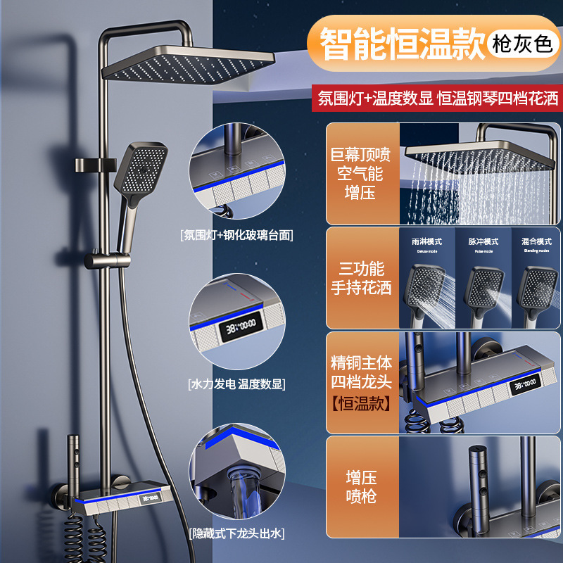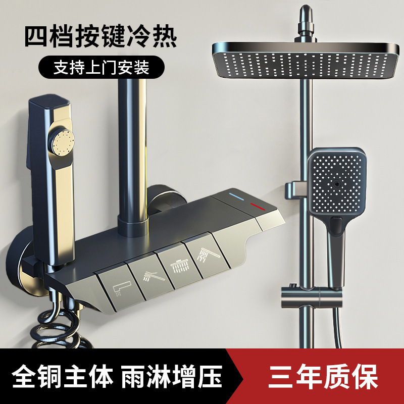 샤워 샤워 세트 모든 구리 샤워 장치 일정한 온도 비 부스터 욕실 샤워 전체 세트 숨겨진 욕실 꽃 머리