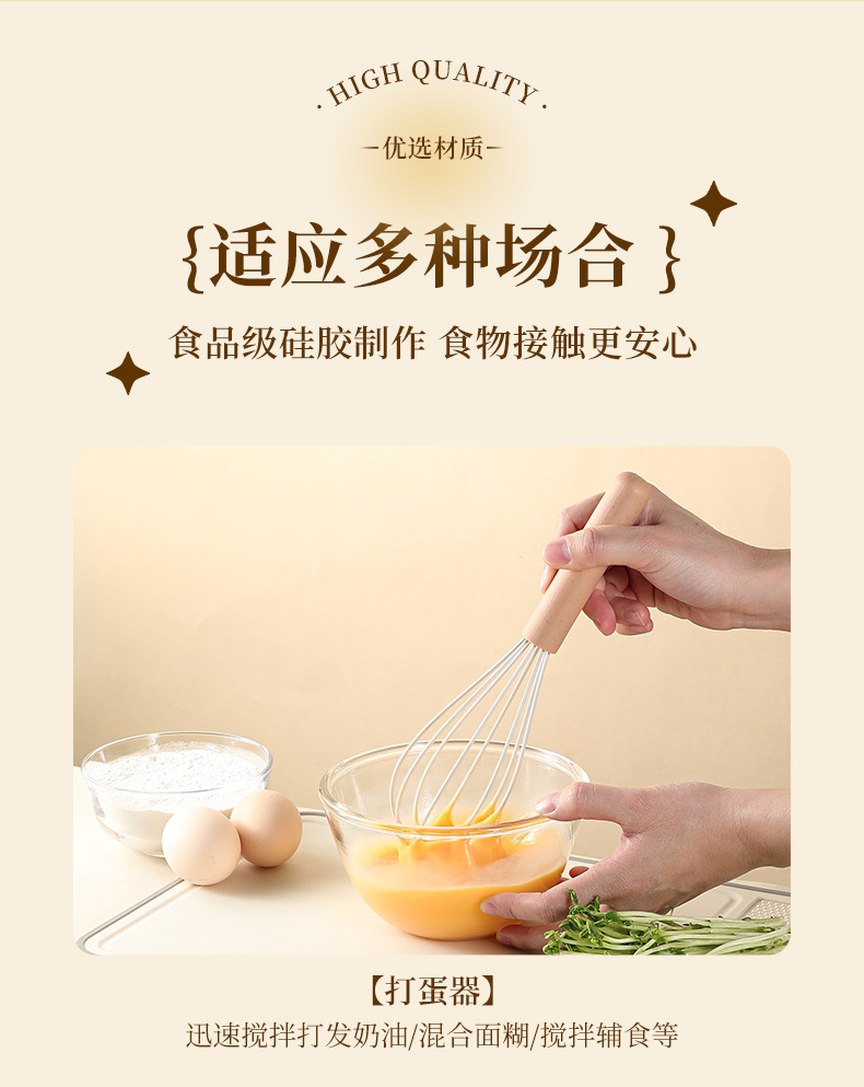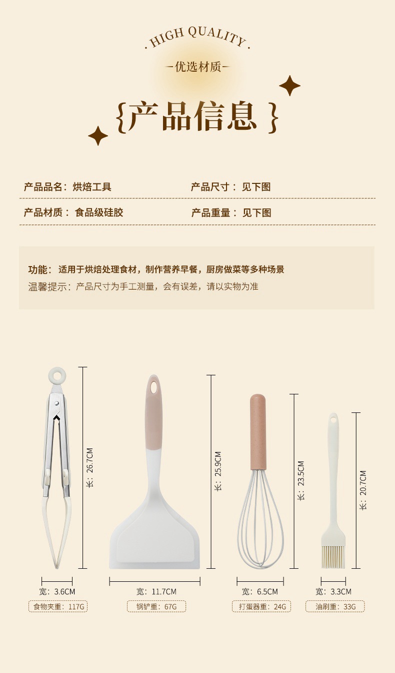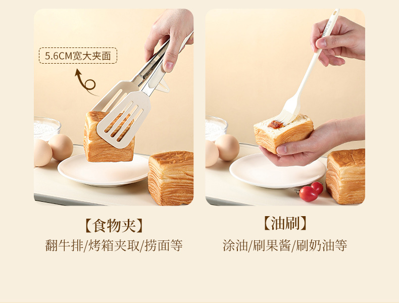 • 갈색 이중 다마고야마 주걱 + 흰색 오일 브러시 + 계란 거품기 + 스테이크 클립