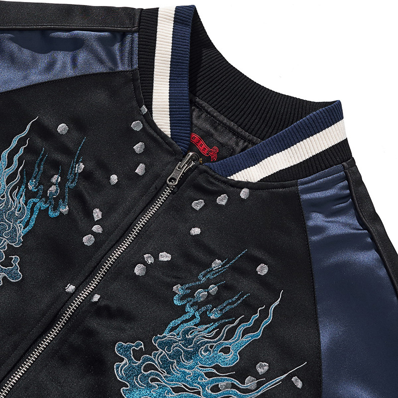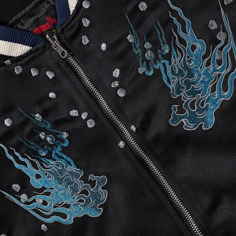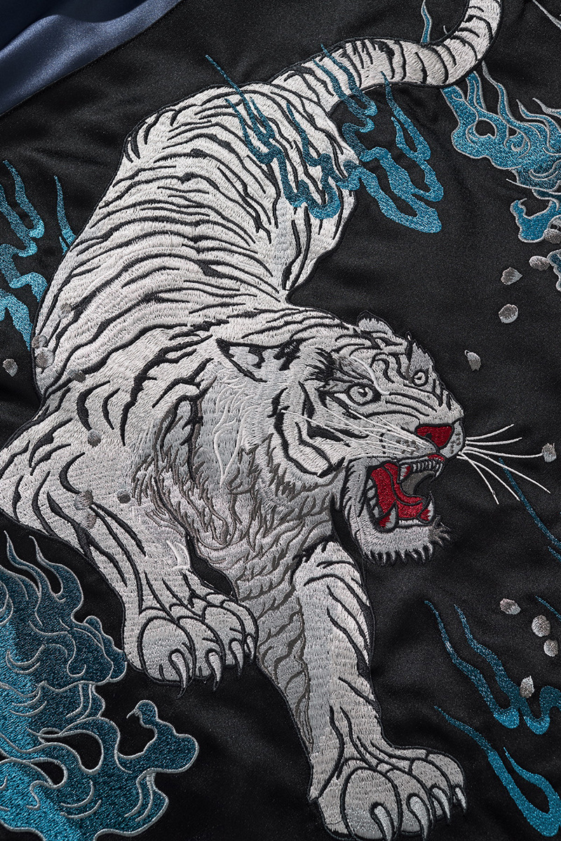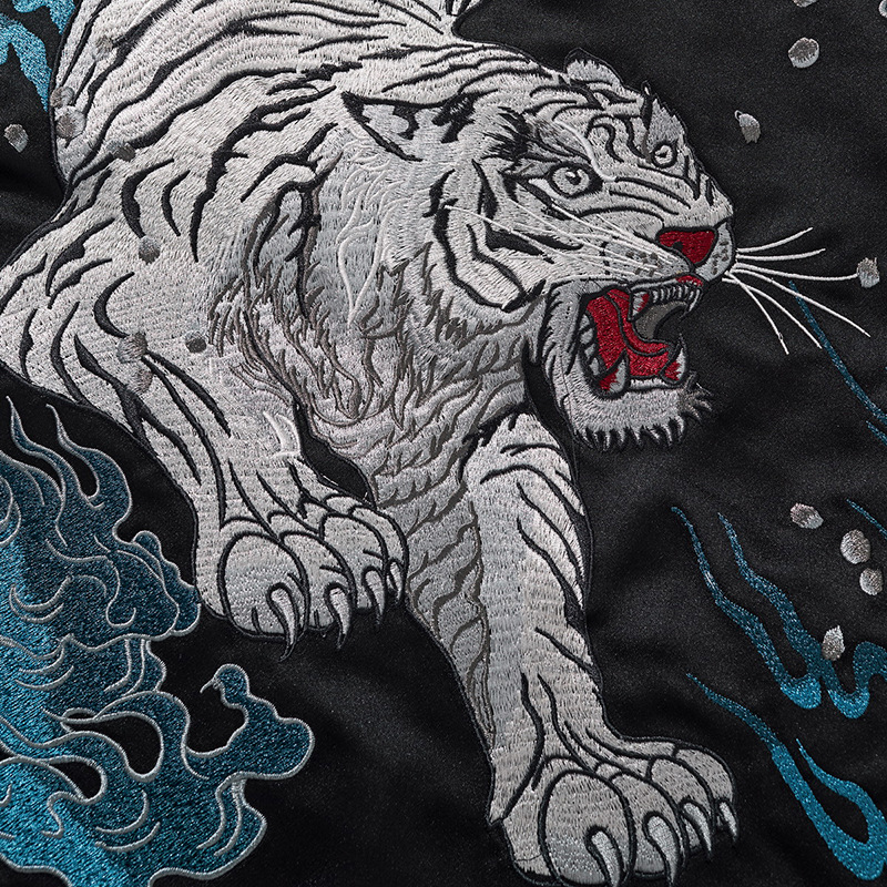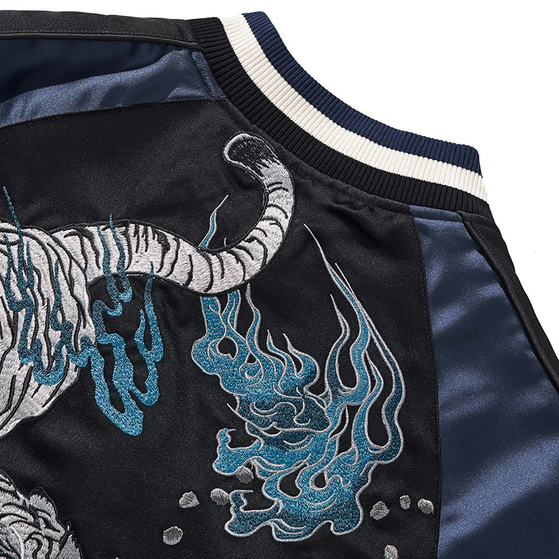 새로운 중공업 자수 재킷 전국 패션 화재 패턴 타이거 재킷 라글란 슬리브 남녀 야구 세트 요코스카 신화 야수스토어 가기