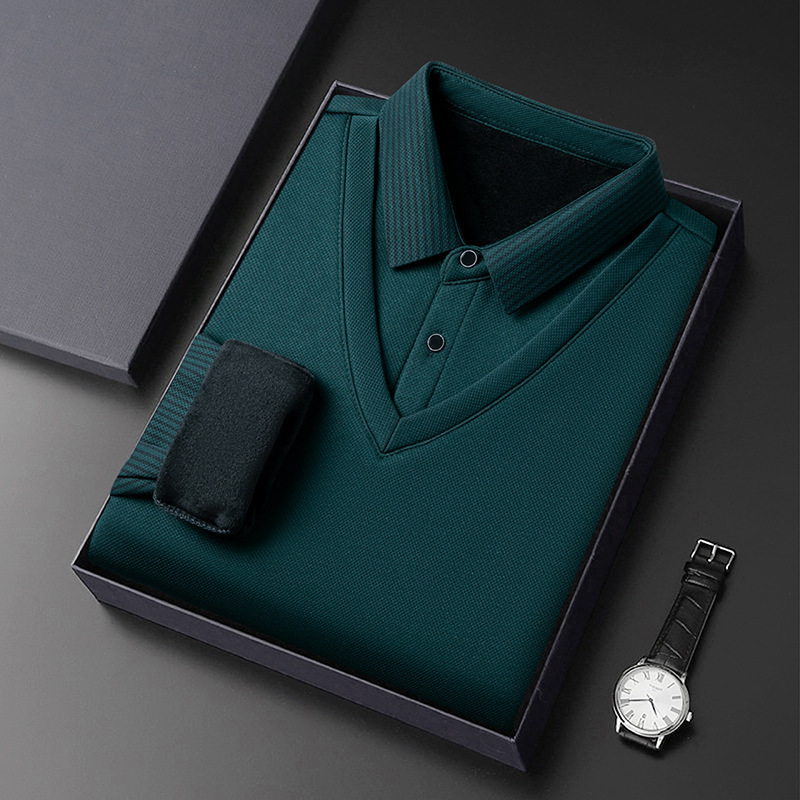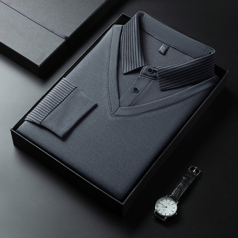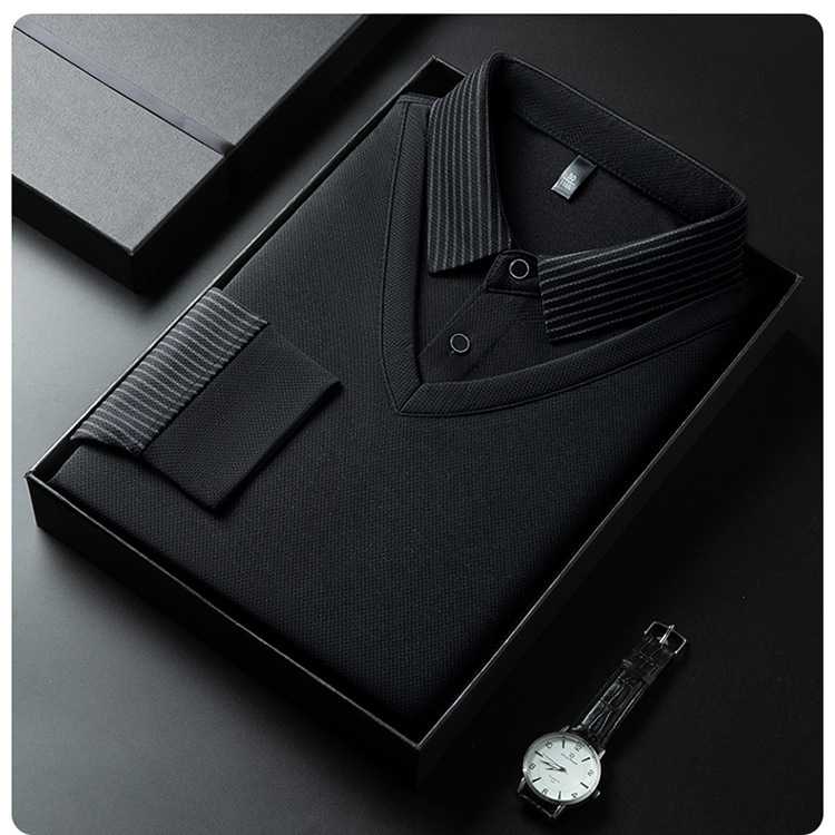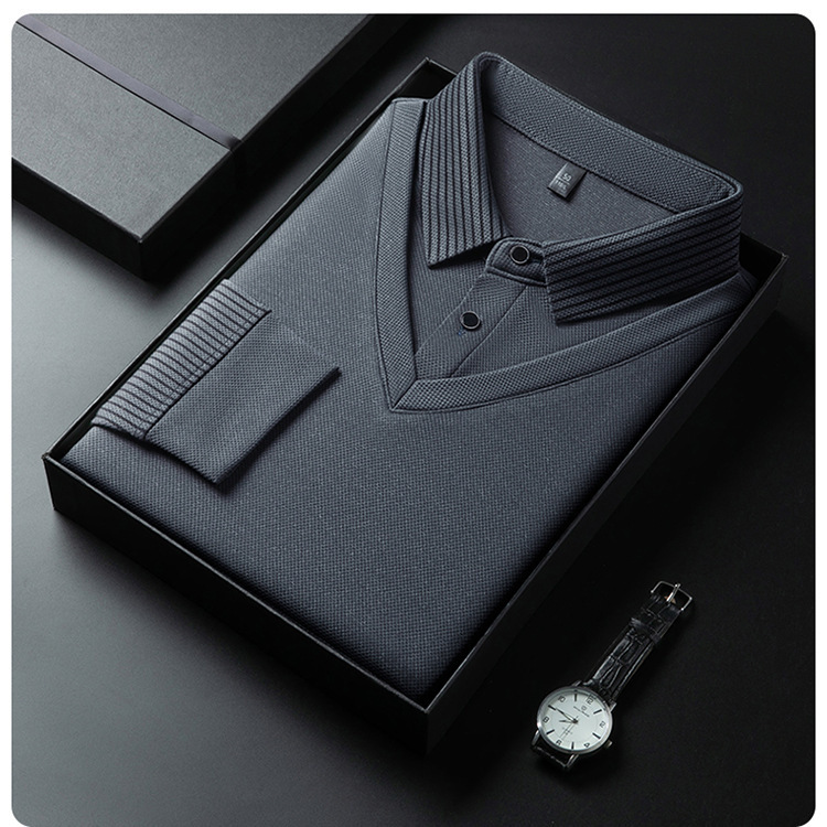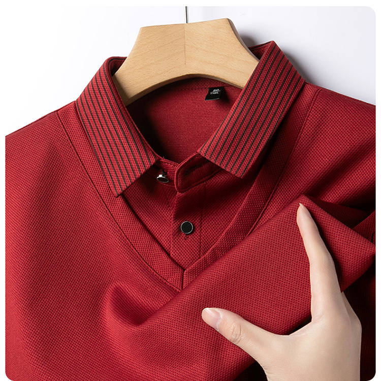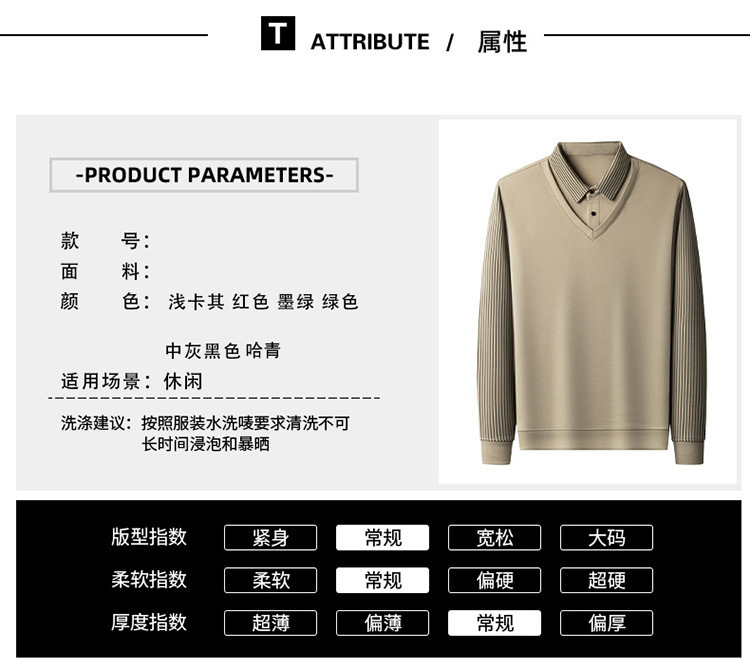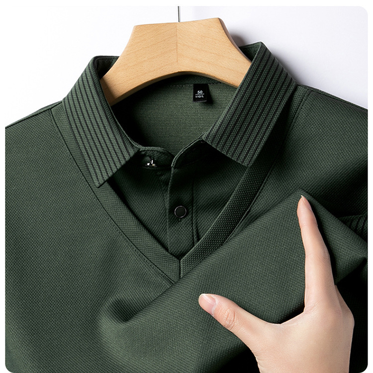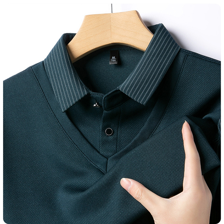 공장 직접 2025 봄 새로운 남성 가짜 투피스 티셔츠 얇은 아빠 셔츠 칼라 스티칭베이스 셔츠