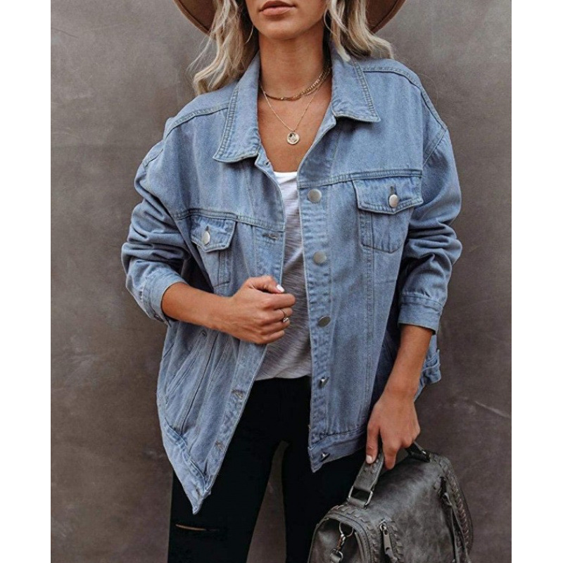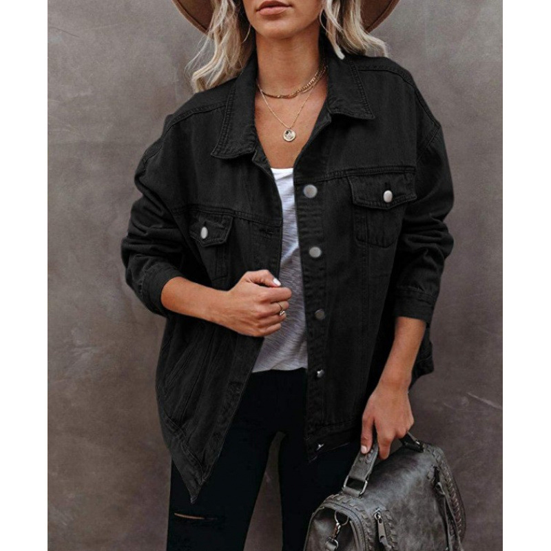 Amazon AliExpress 새로운 국경 간 대외 무역 유럽과 미국 패션 데님 코트 여성용 옷깃 긴소매 면 재킷 탑스토어 가기