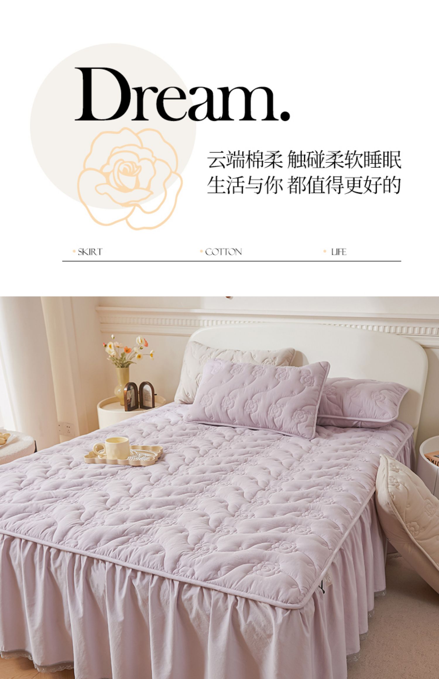 Y * JA 클래스 침대 스커트 싱글 피스 두꺼운 퀼트 프린세스 스타일 순수 세척 코튼 미끄럼 방지 침대 스프레드 스커트 사계절