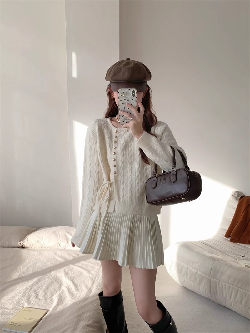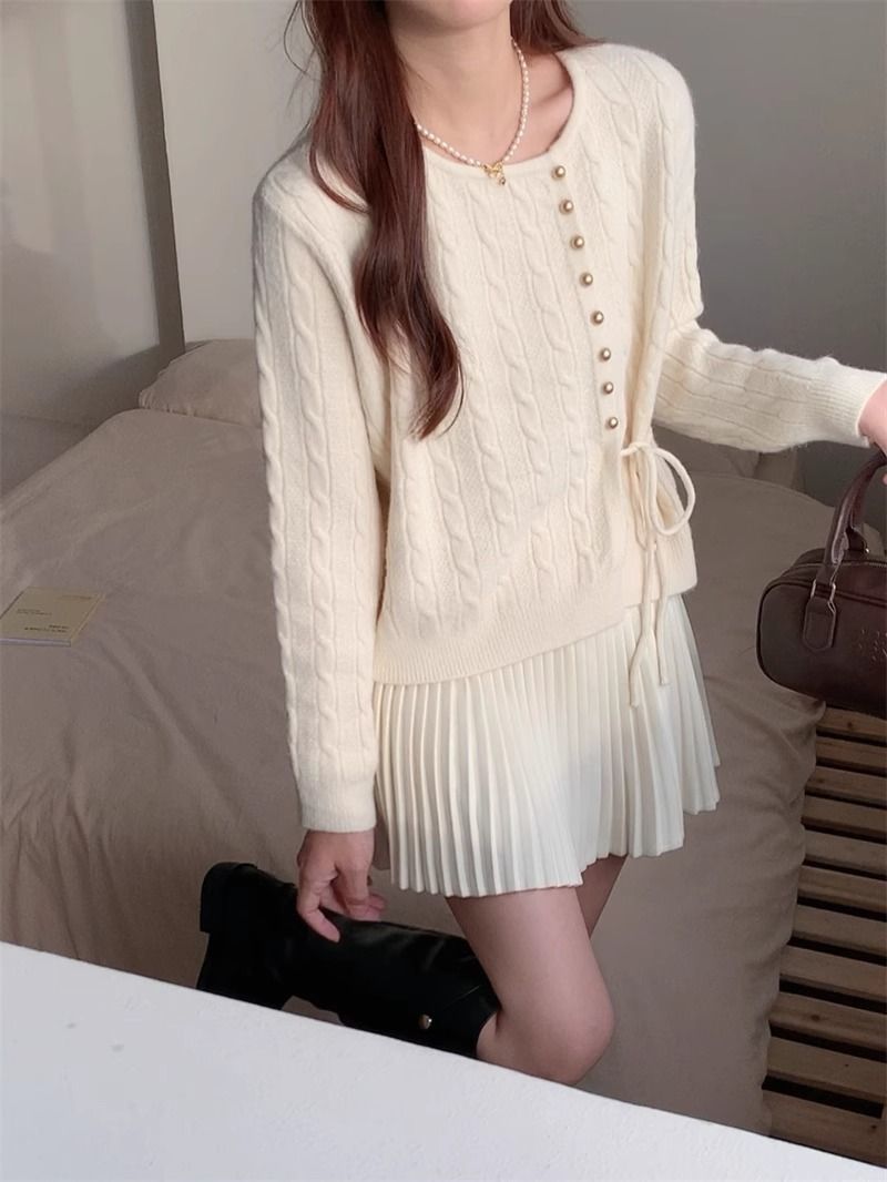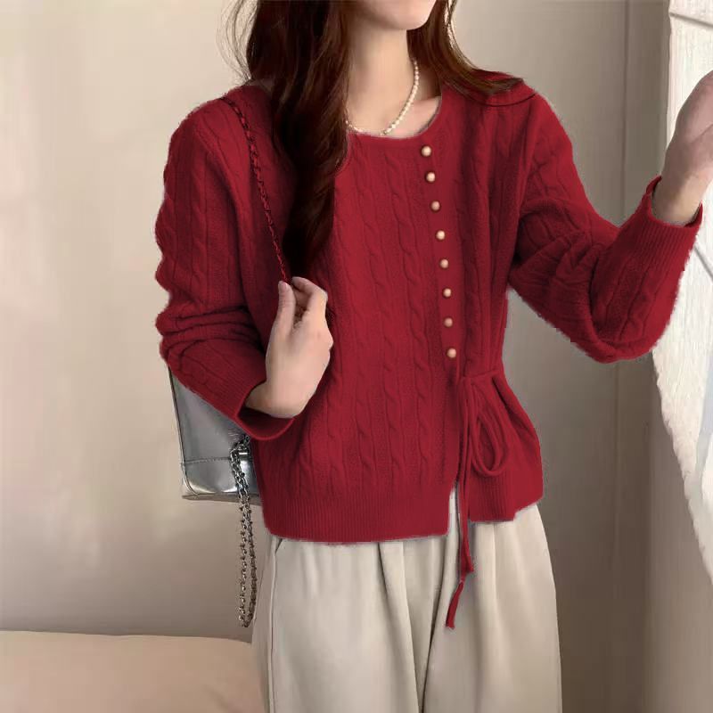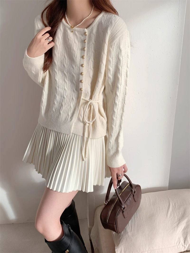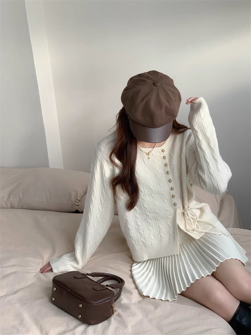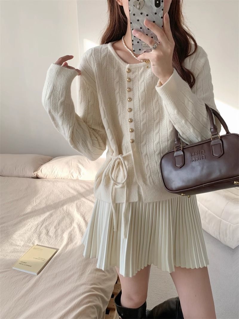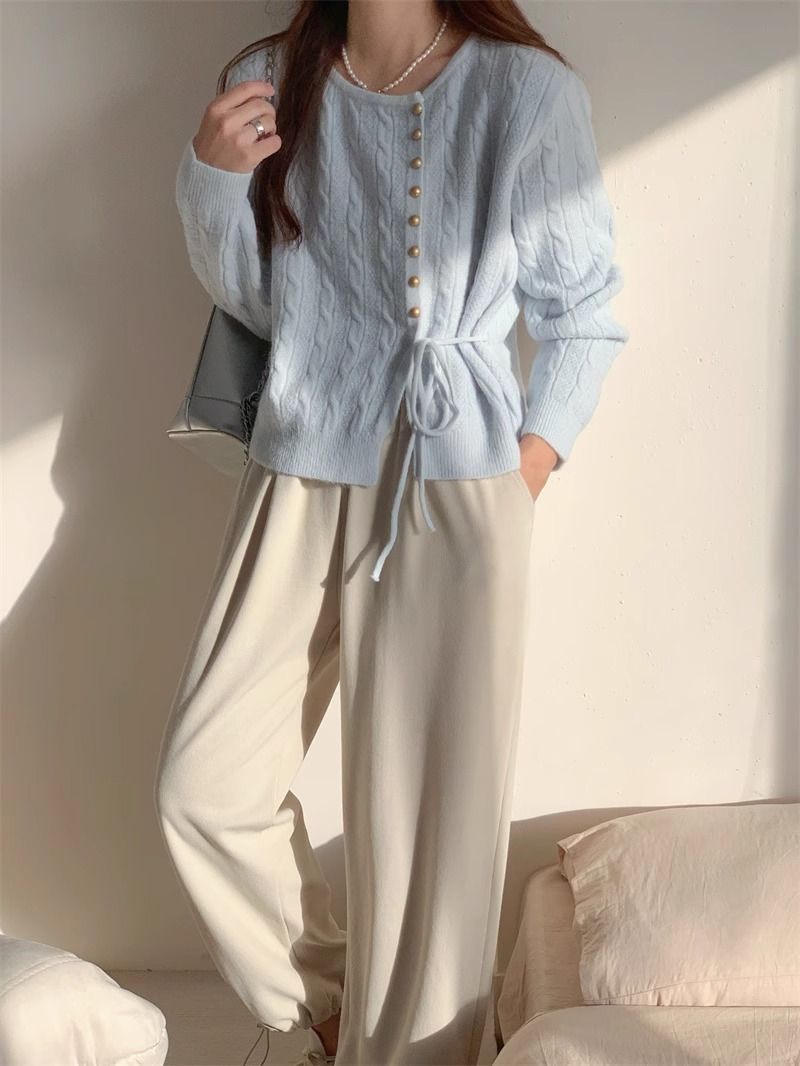 OLISI 부드러운 우유 스타일 블루 트위스트 한국 스타일 내부 니트 탑 카디건 게으른 느슨한 스웨터 여성 코트