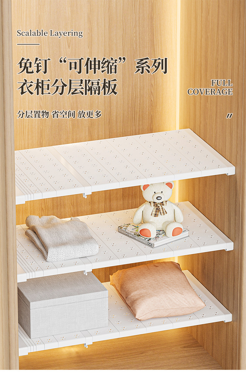 수납용 다층 칸막이 캐비닛 선반 옷장 칸막이 확장형 칸막이 수납 선반 신발장 선반 공간 절약
