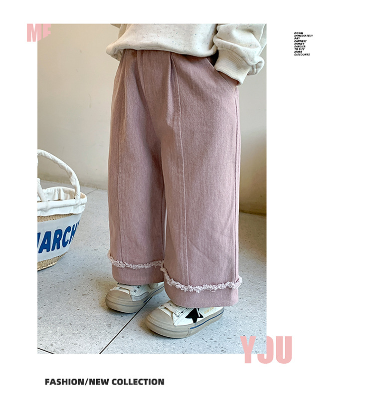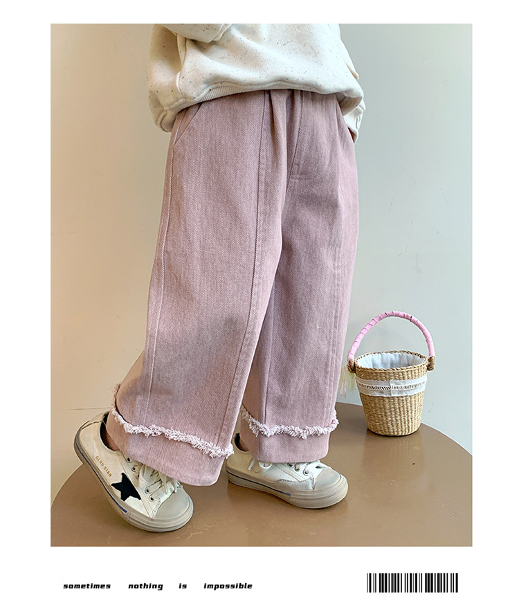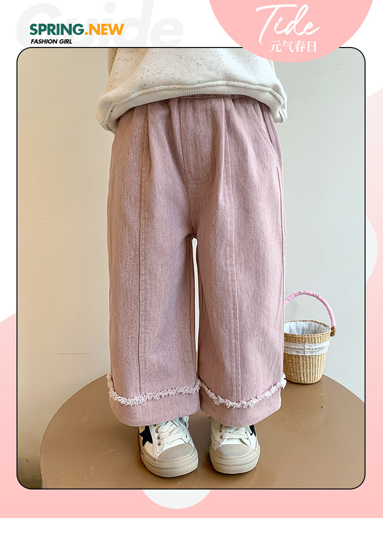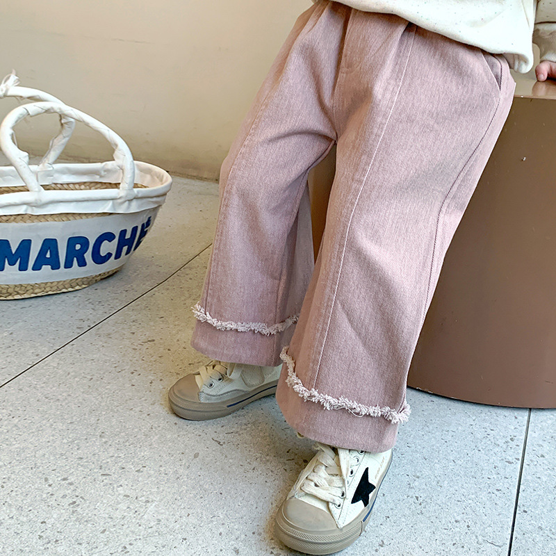 소녀 면 캐주얼 바지 봄과 가을 2025 새로운 패션 어린 소녀 느슨한 직선 다리 바지 중소 어린이 바지스토어 가기