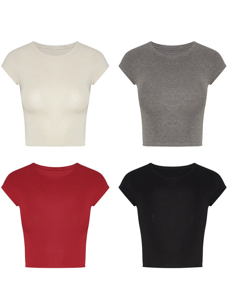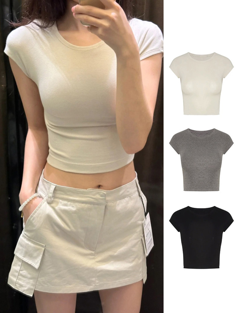 스파이스 걸스 숄더 올 매치 배벨 반팔 티셔츠 여성 여름 새로운 순수 허리 슬림 핏 슬리밍 쇼트 탑