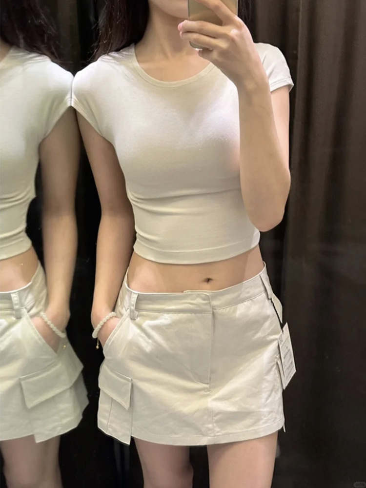 스파이스 걸스 숄더 올 매치 배벨 반팔 티셔츠 여성 여름 새로운 순수 허리 슬림 핏 슬리밍 쇼트 탑스토어 가기
