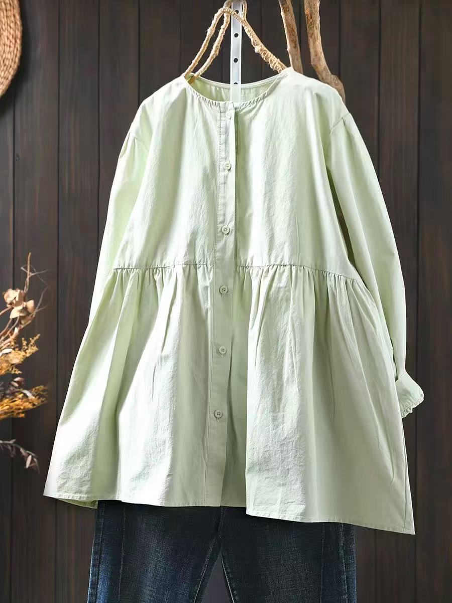 봄 새로운 면 긴 소매 셔츠 여성의 최고 인형 셔츠 느슨한 3611스토어 가기