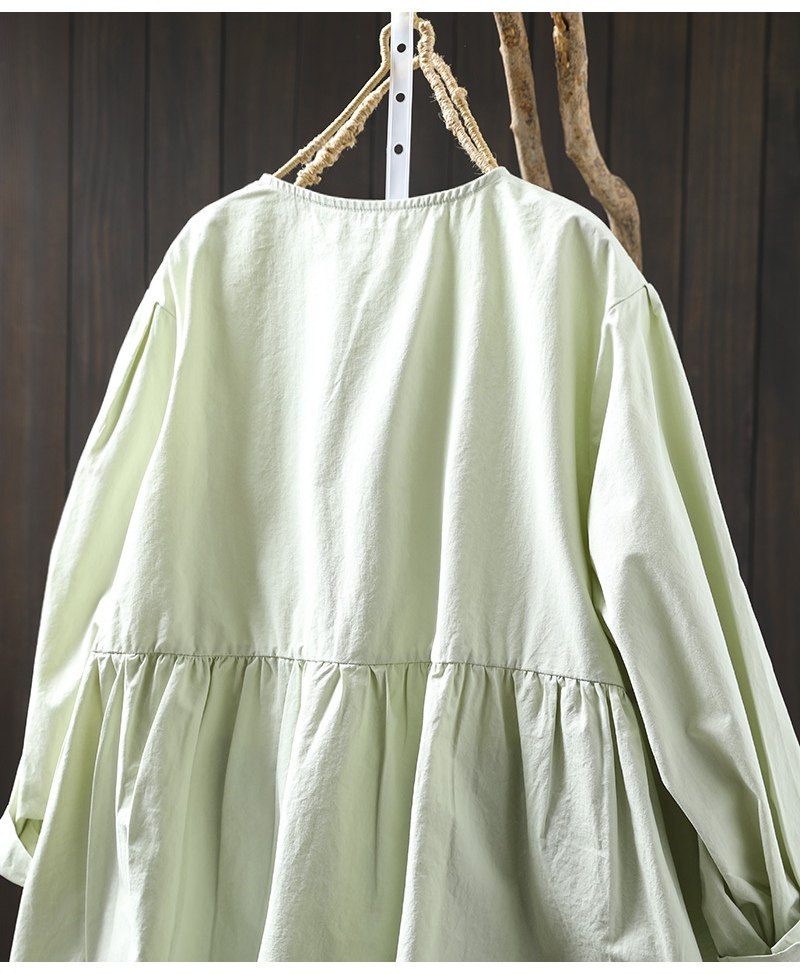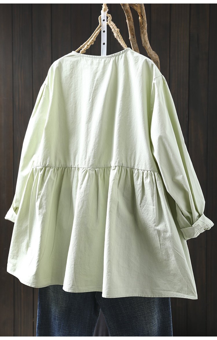 봄 새로운 면 긴 소매 셔츠 여성의 최고 인형 셔츠 느슨한 3611