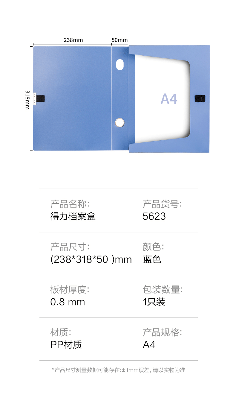 델리 5623 파일 박스 오피스 용품 5cmA4 벨크로 파일 박스 데이터 박스