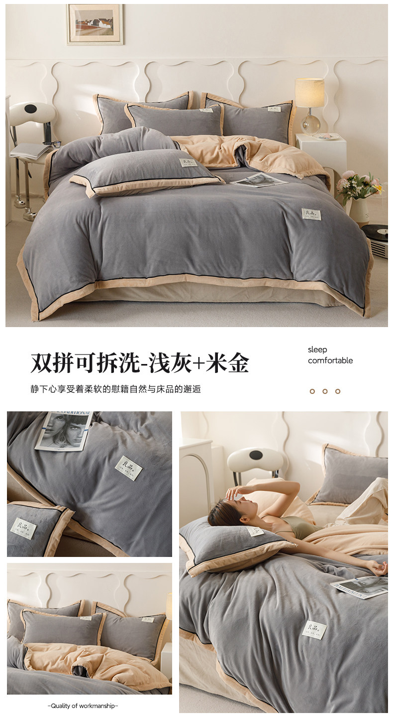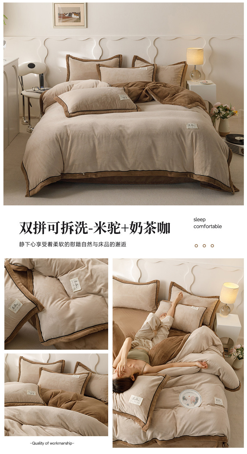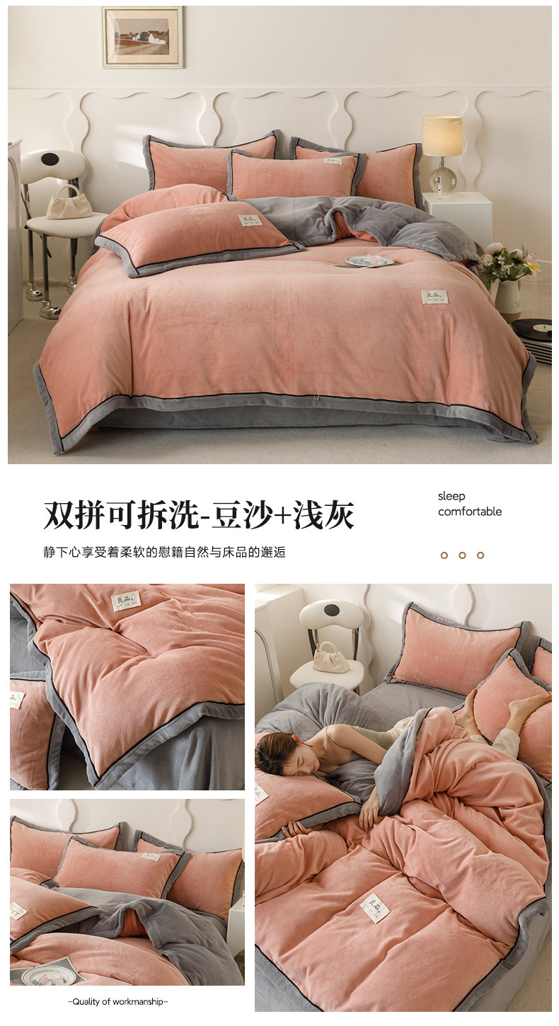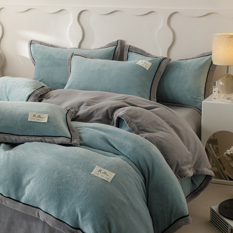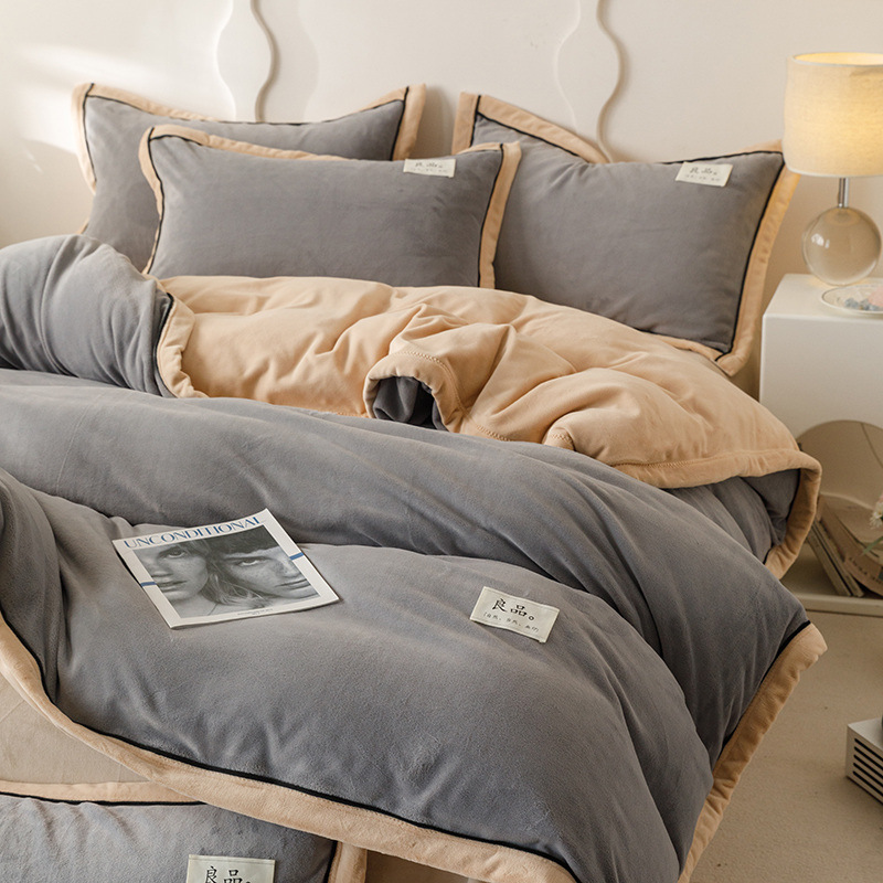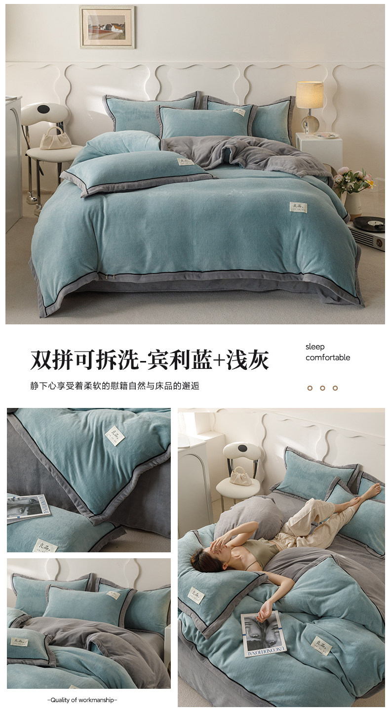 가을과 겨울 4 피스 기모 밀크 벨벳 플란넬 시트가 두꺼워 양면 벨벳 퀼트 커버 학생 기숙사 3 피스 세트