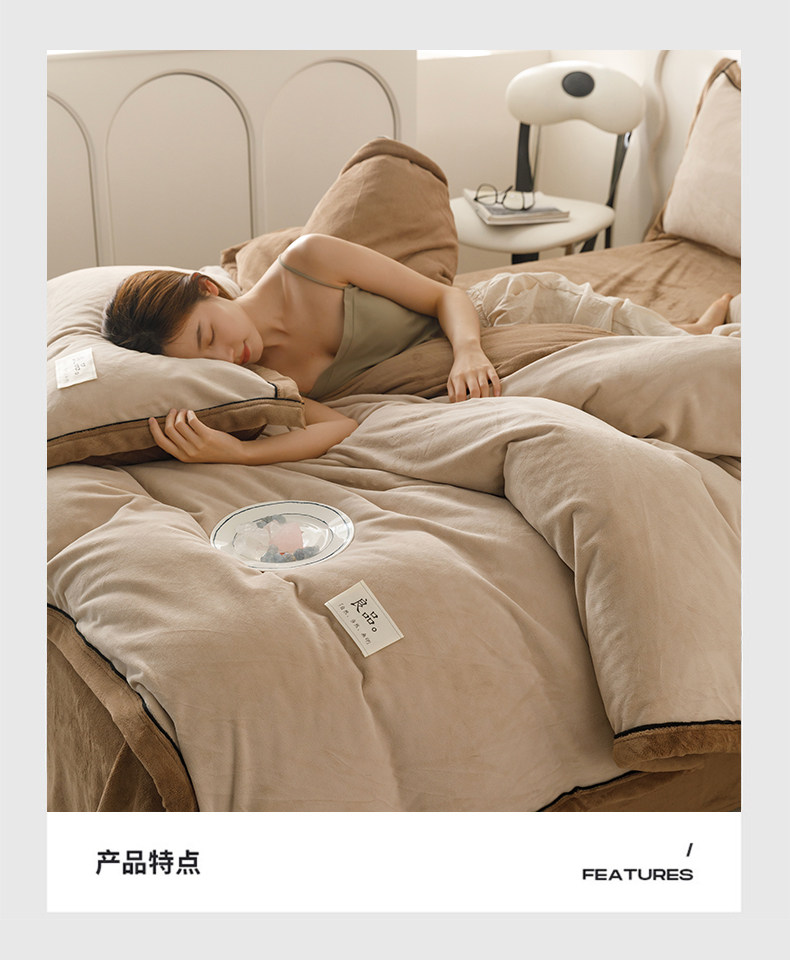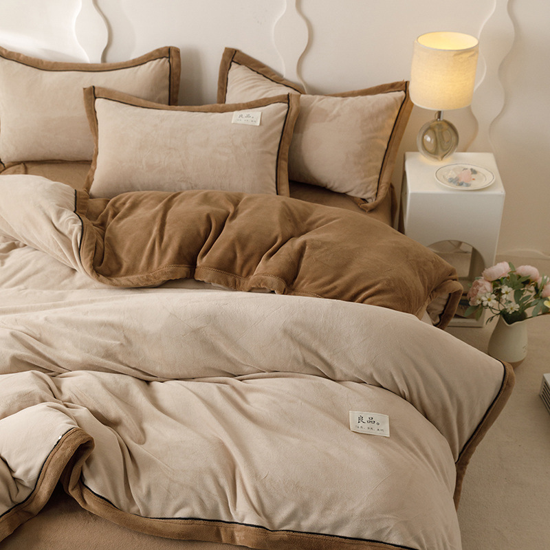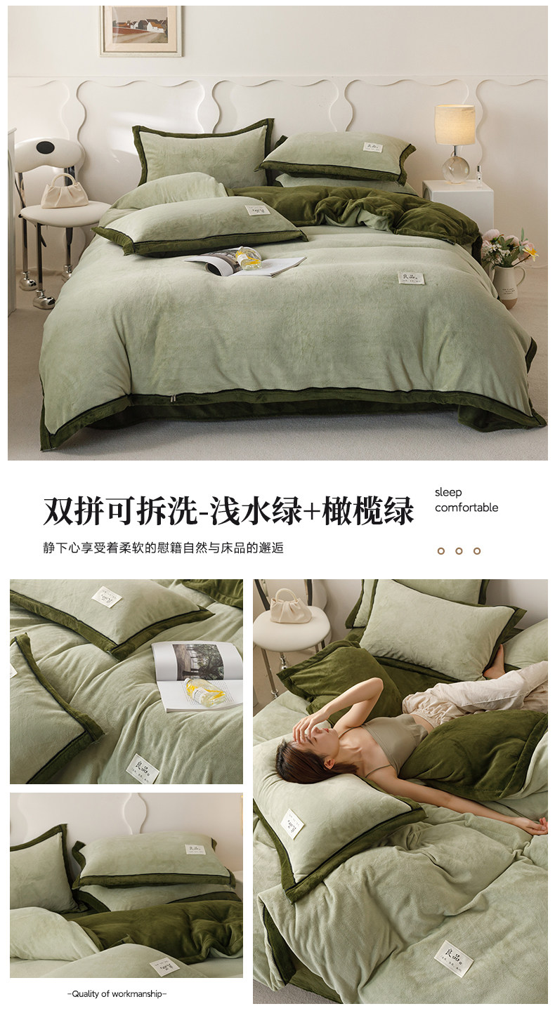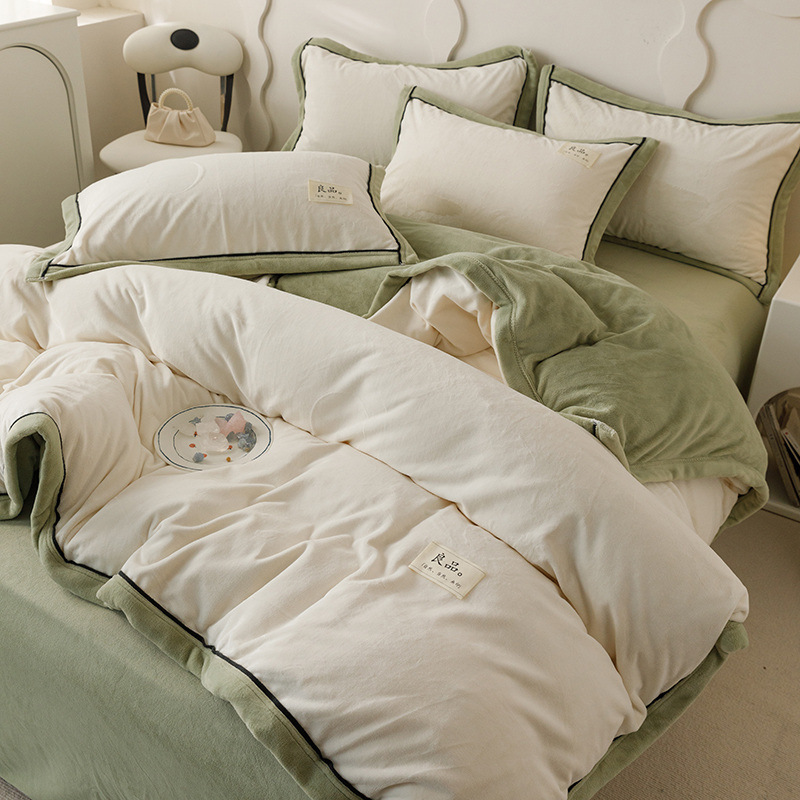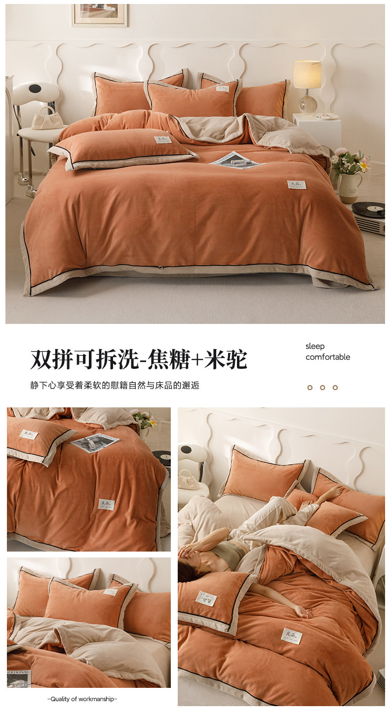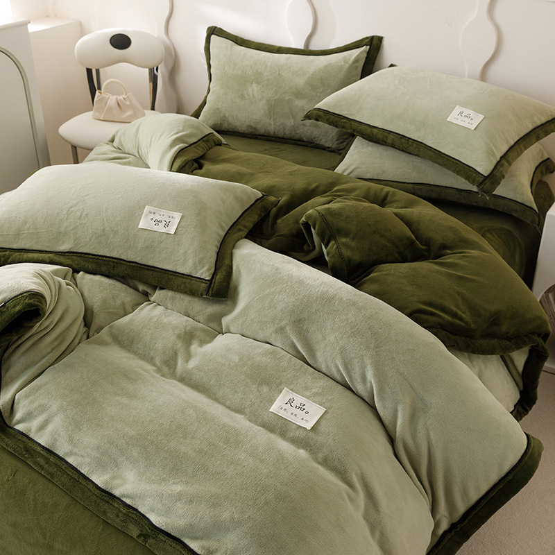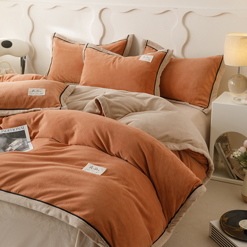 가을과 겨울 4 피스 기모 밀크 벨벳 플란넬 시트가 두꺼워 양면 벨벳 퀼트 커버 학생 기숙사 3 피스 세트
