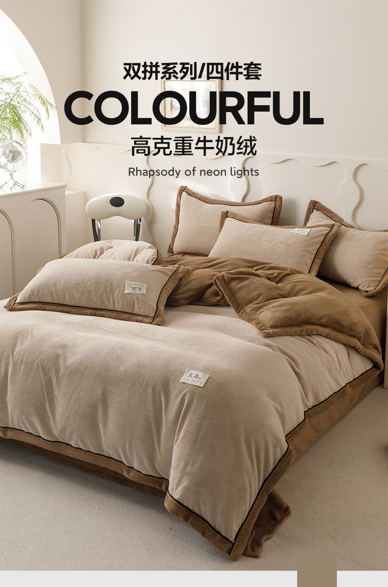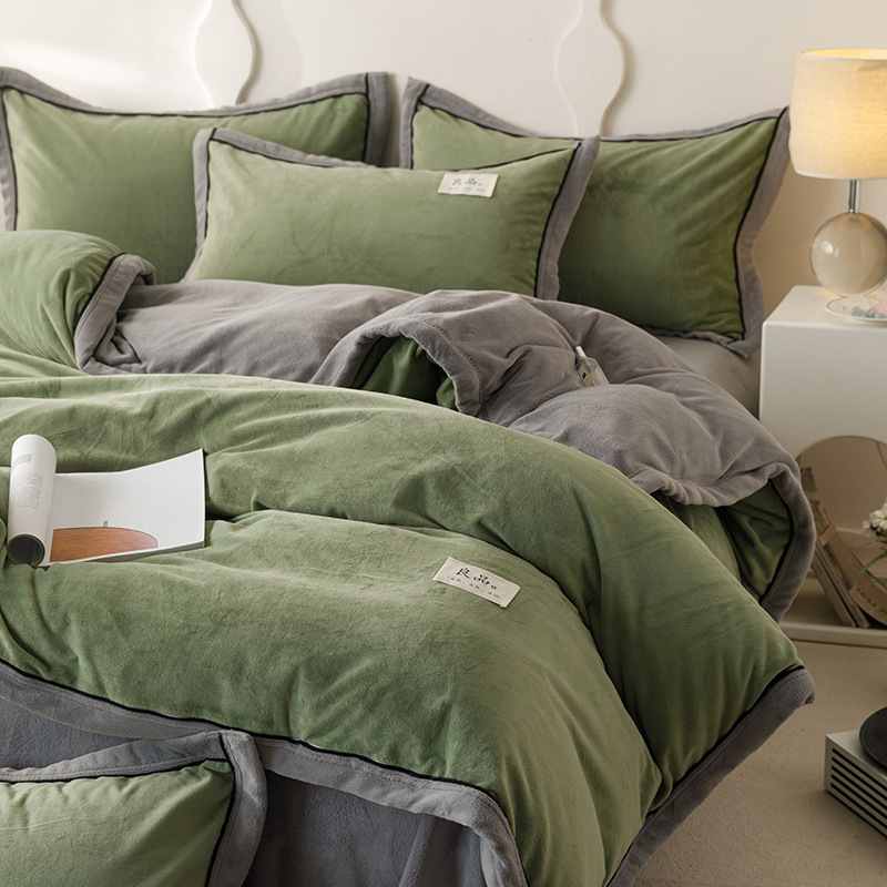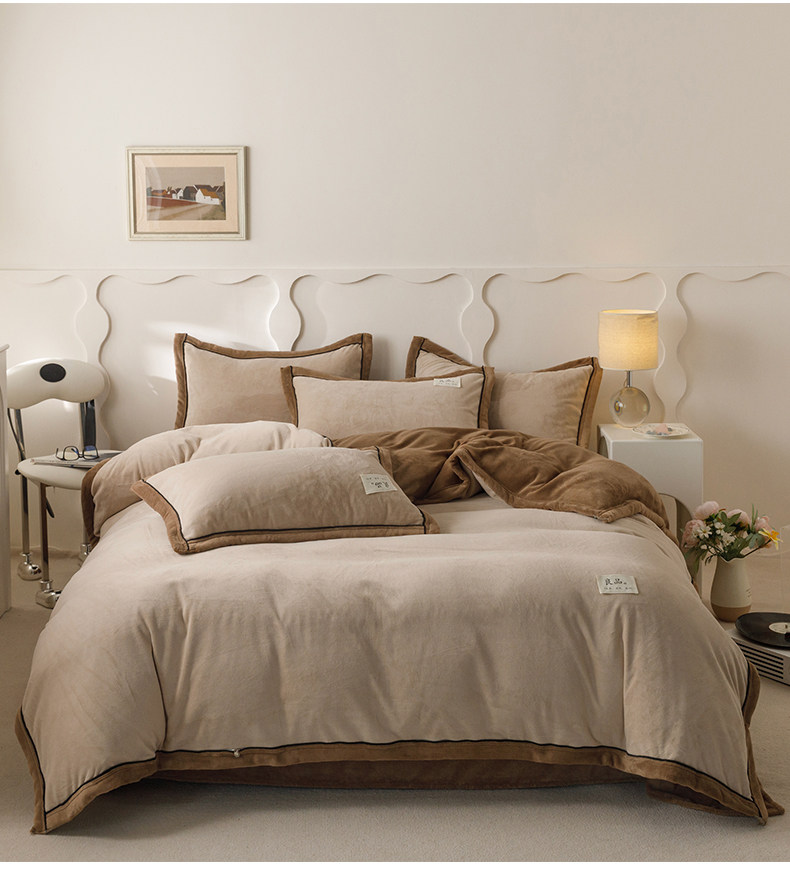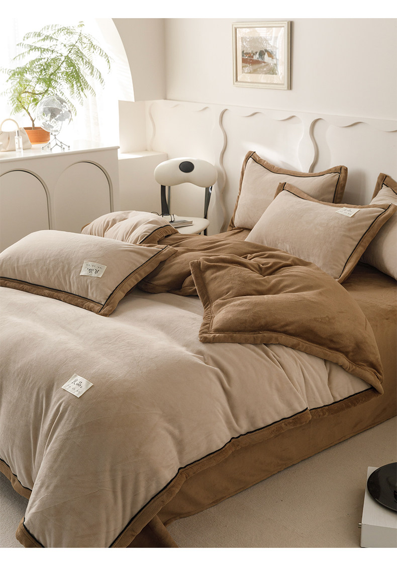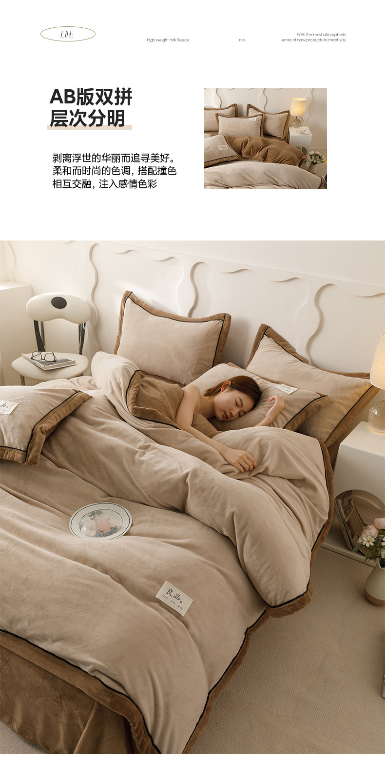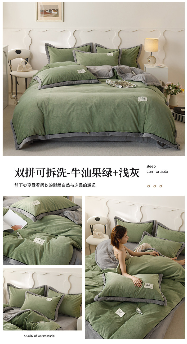 가을과 겨울 4 피스 기모 밀크 벨벳 플란넬 시트가 두꺼워 양면 벨벳 퀼트 커버 학생 기숙사 3 피스 세트