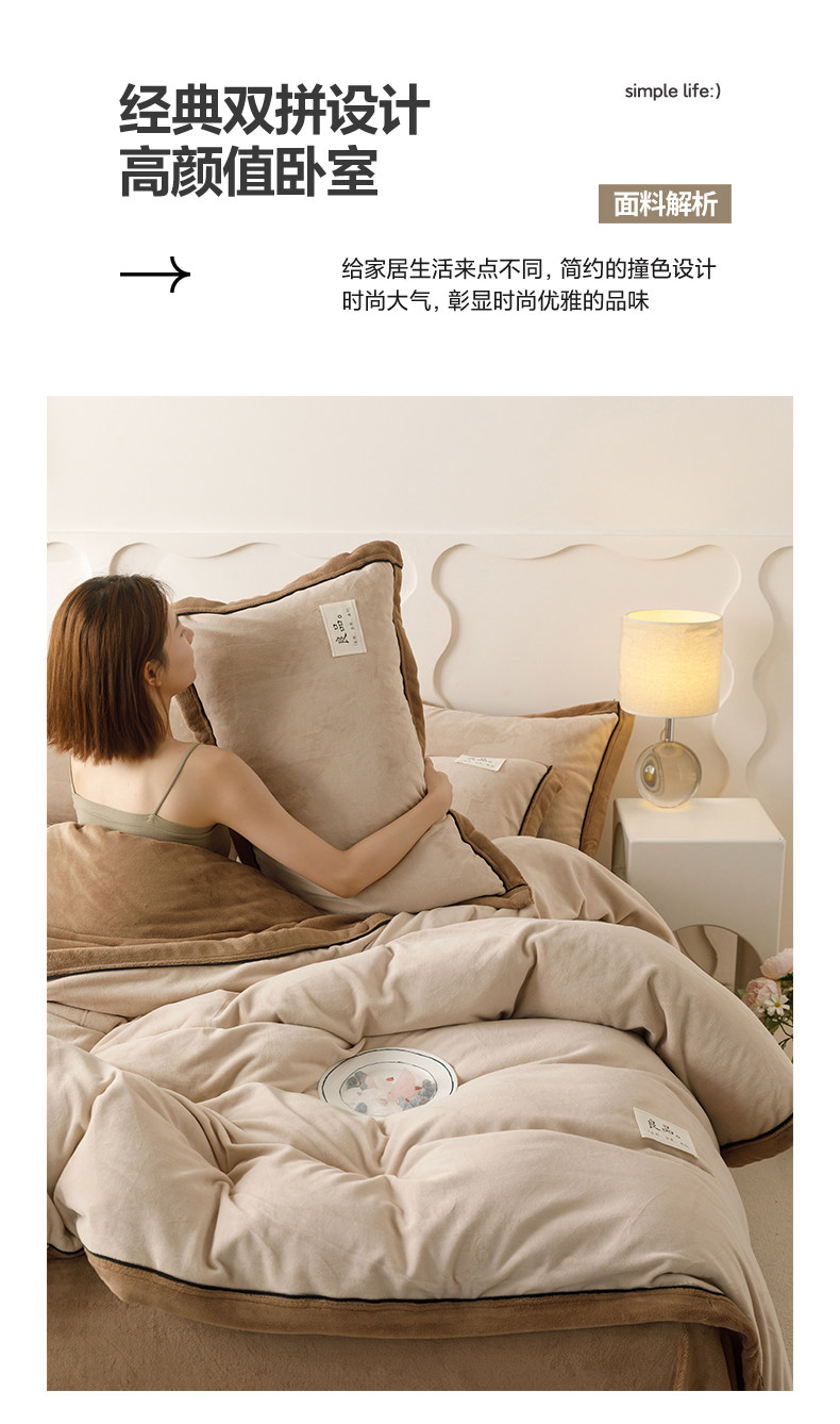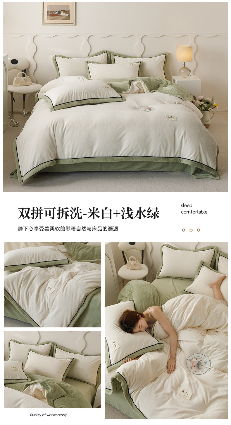가을과 겨울 4 피스 기모 밀크 벨벳 플란넬 시트가 두꺼워 양면 벨벳 퀼트 커버 학생 기숙사 3 피스 세트스토어 가기