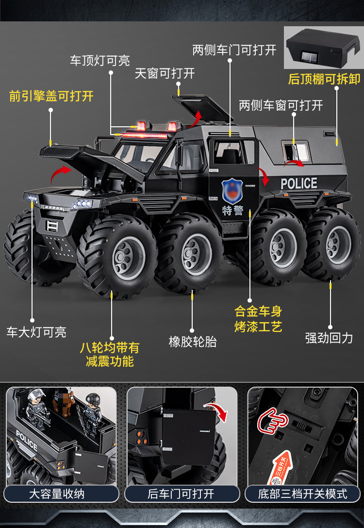 • [탈착식 차량] 도시 SWAT 장갑 돌격 차량에는 인형이 포함되어 있습니다.