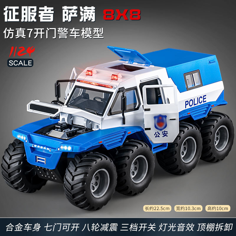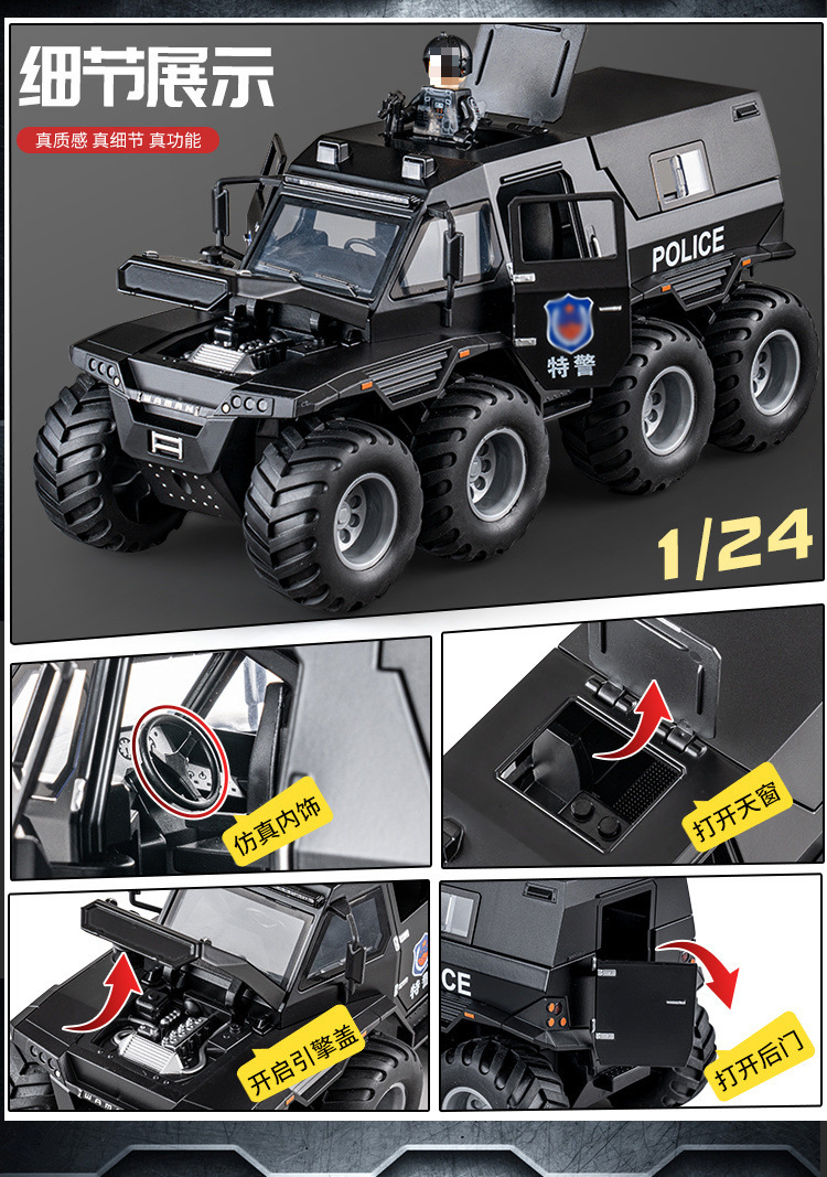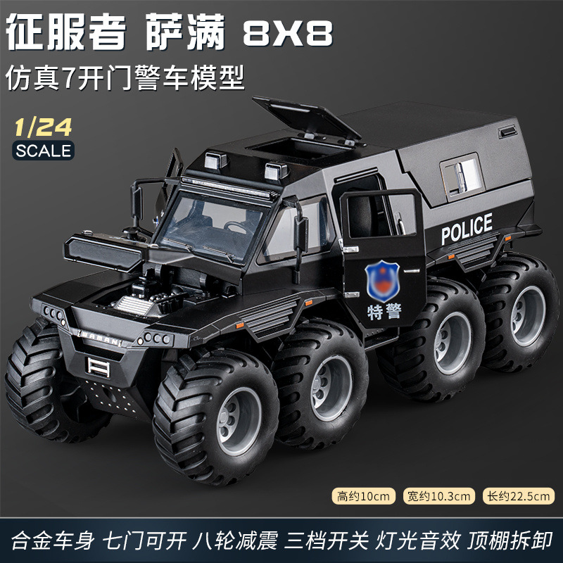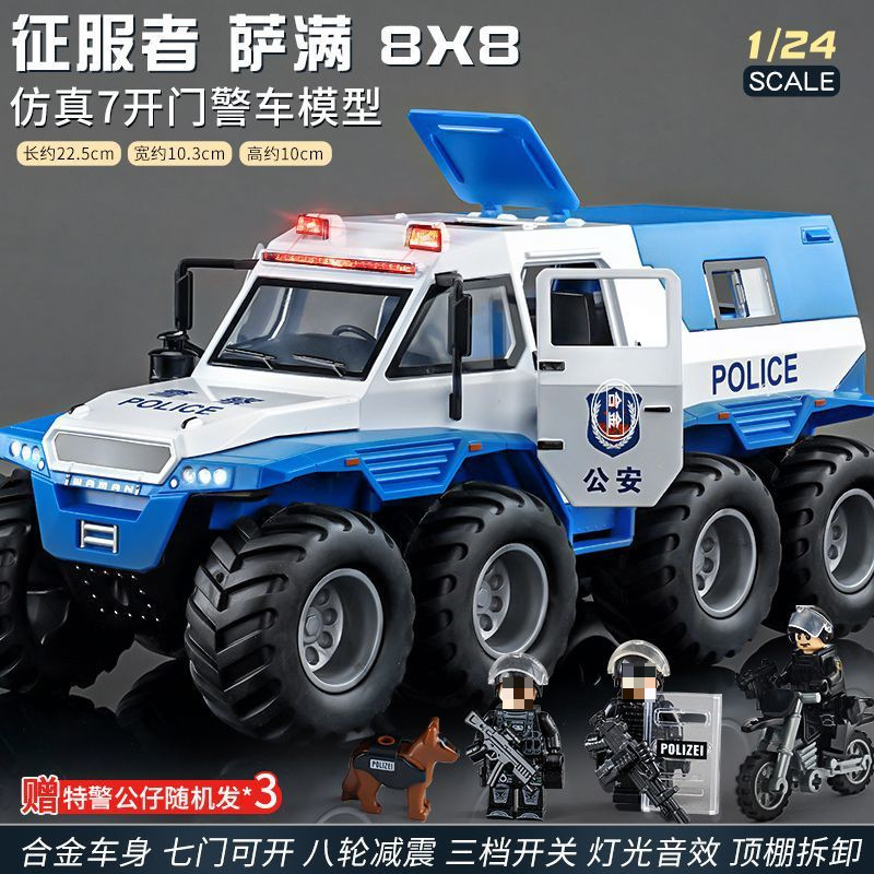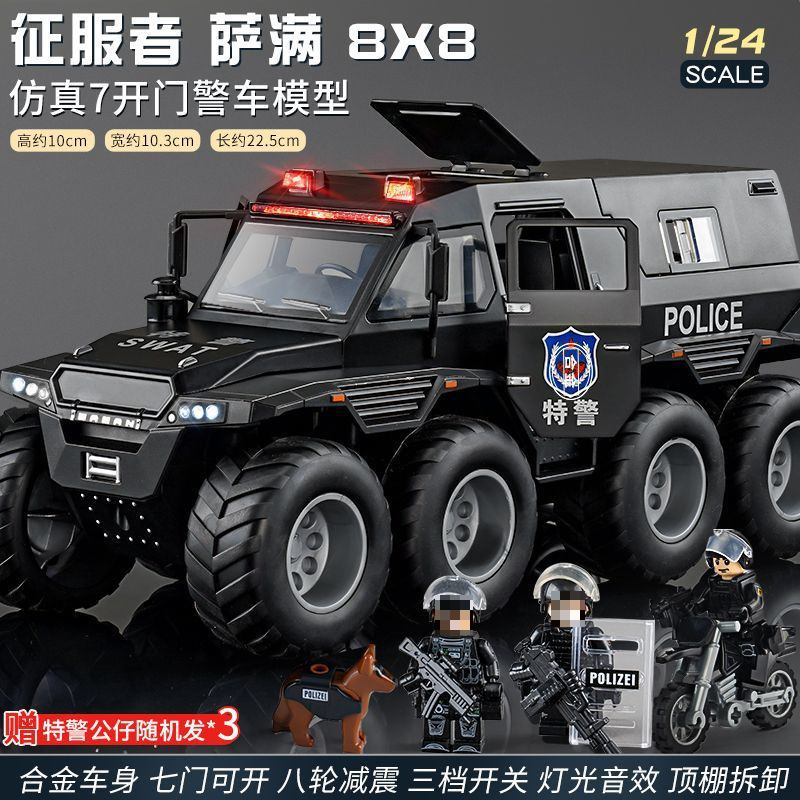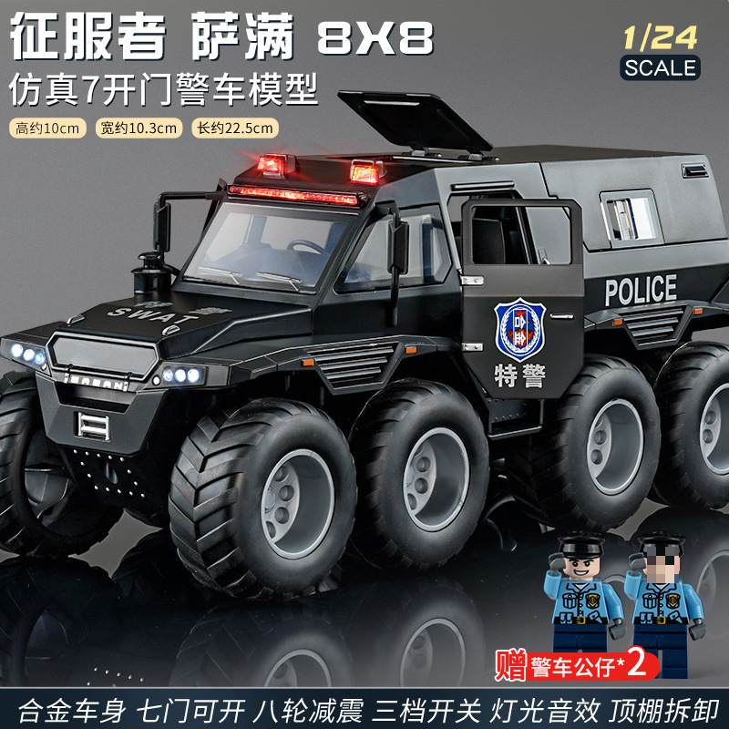 1:24 8 륜 대형 오프로드 차량 장난감 자동차 경찰차 소년 합금 장갑차 시뮬레이션 자동차 모델