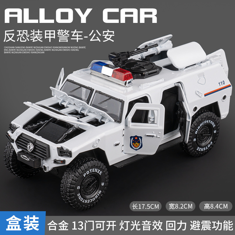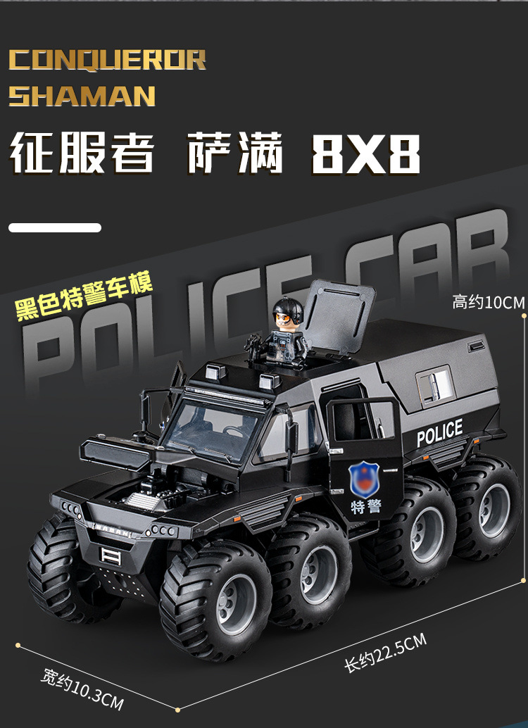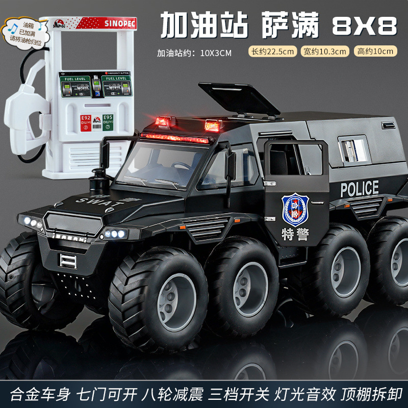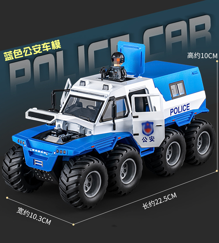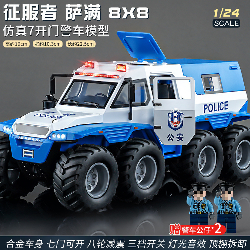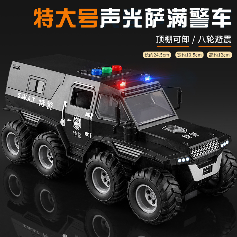 1:24 8 륜 대형 오프로드 차량 장난감 자동차 경찰차 소년 합금 장갑차 시뮬레이션 자동차 모델
