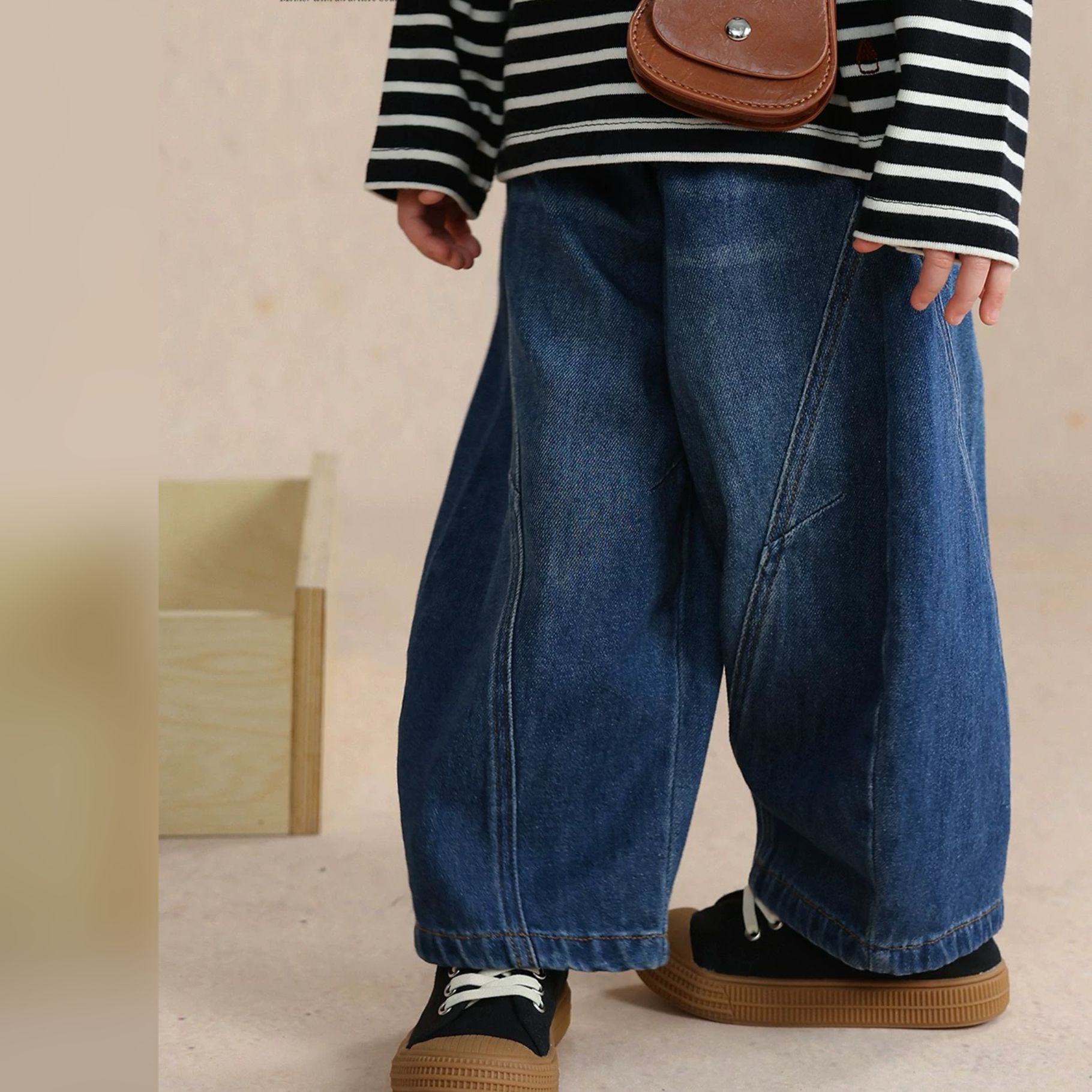 2025 가을 새로운 어린이 다목적 서양식 캐주얼 복고풍 부드러운 밀랍 유치원 데님 캐주얼 바지스토어 가기