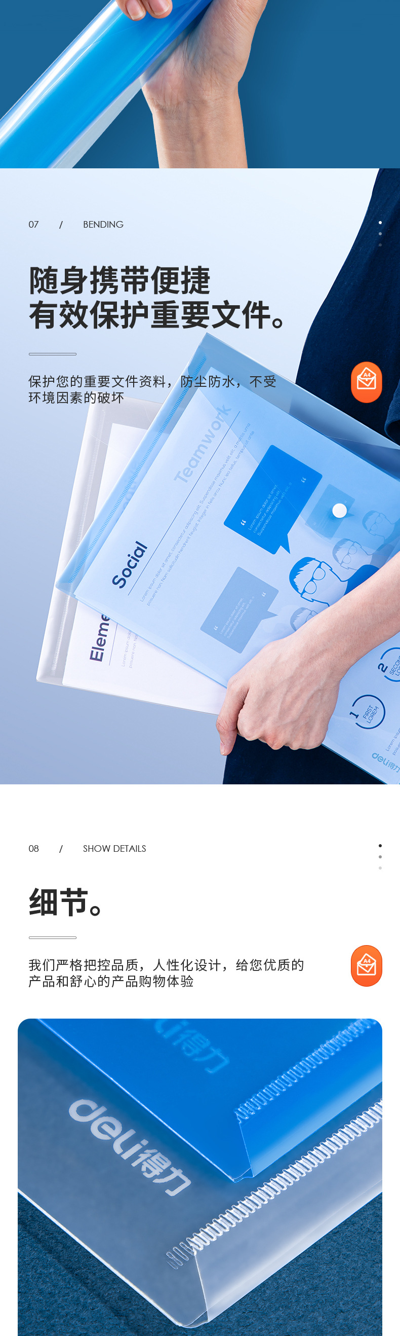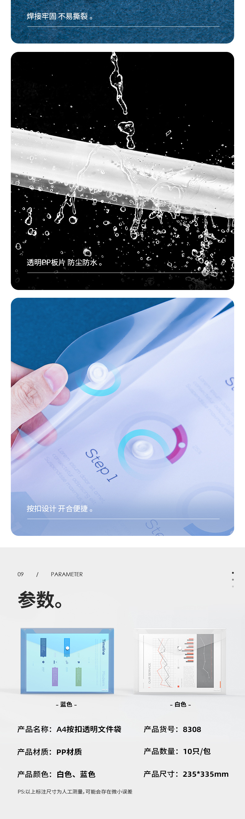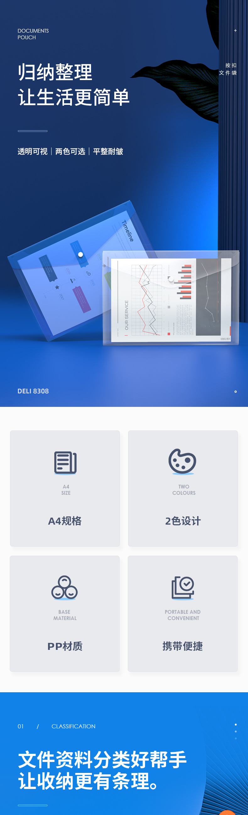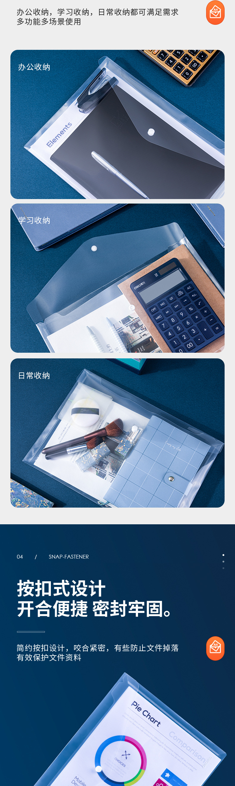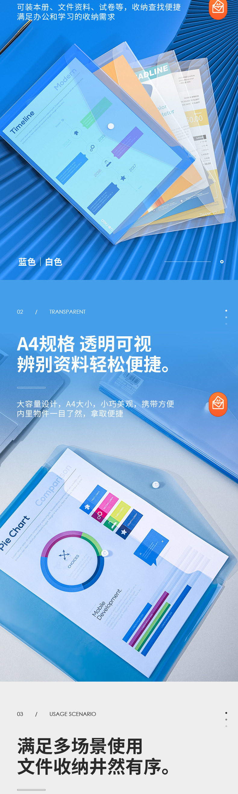 델리 8308 파일 가방 투명/파란색 A4 플라스틱 대용량 두꺼운 지폐 저장 가방 도매스토어 가기