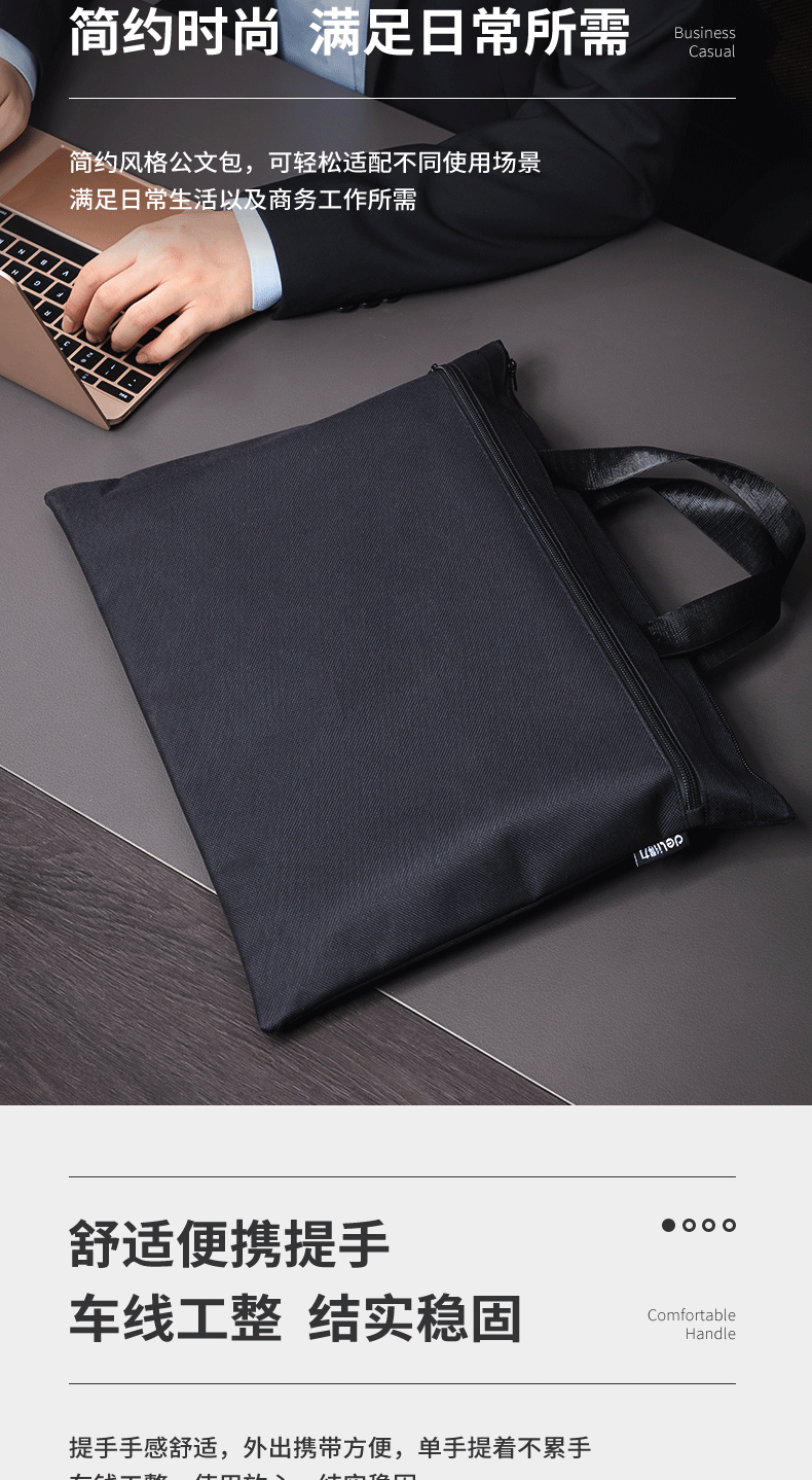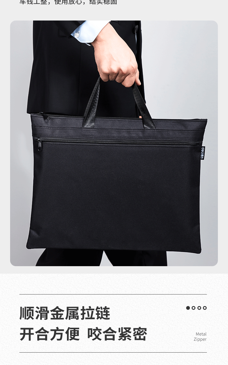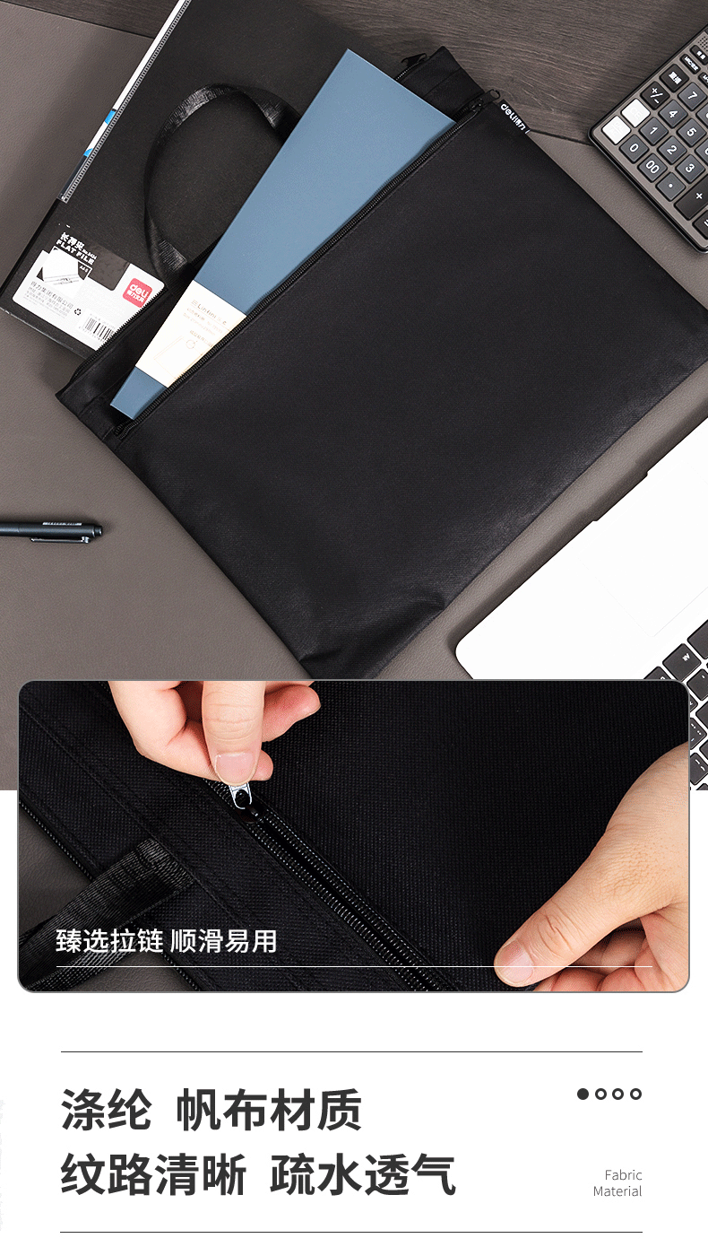 델리 5840 핸드백 대용량 A4 파일 데이터 지퍼 가방 캔버스 핸드백 남성과 여성 스토리지 가방