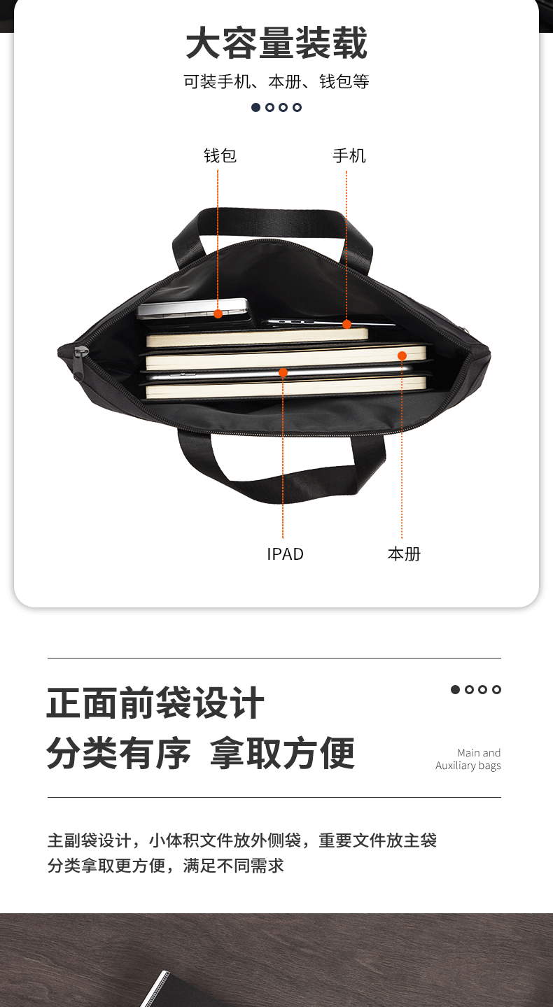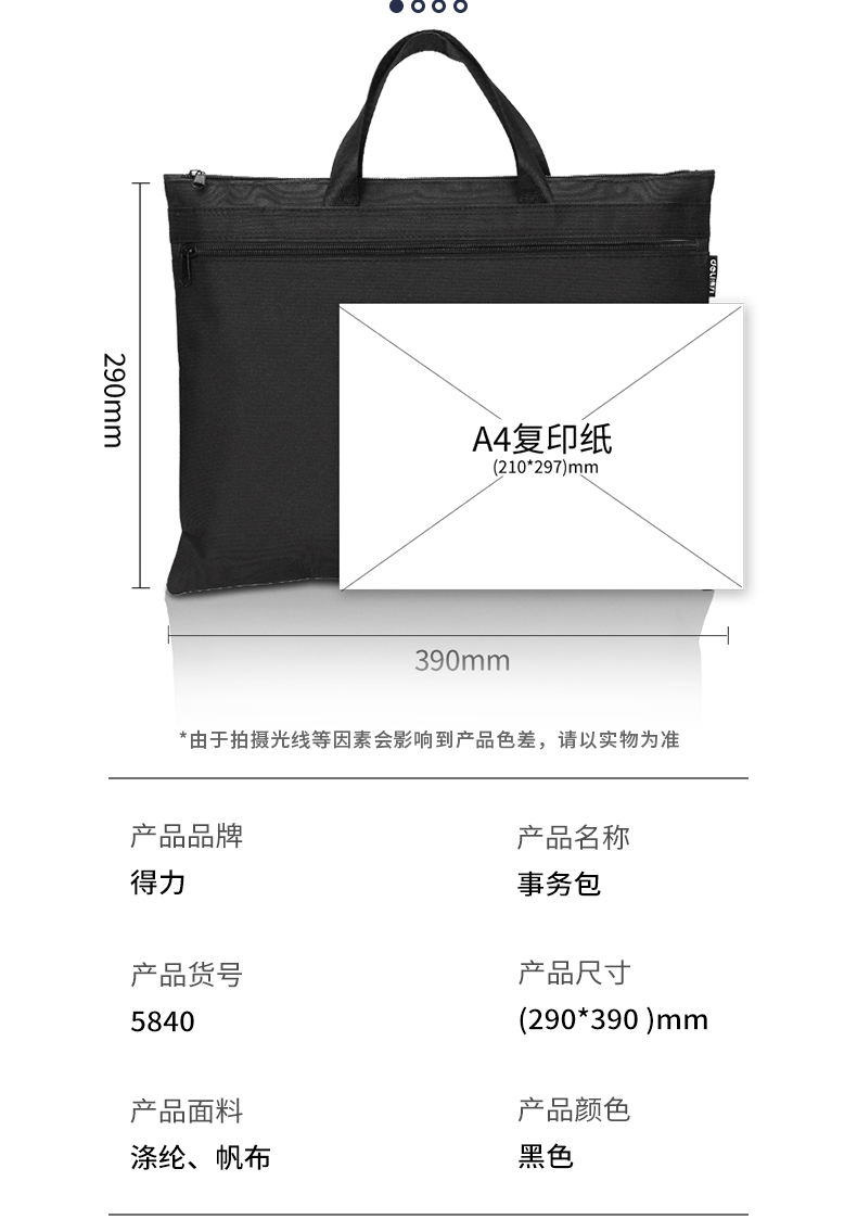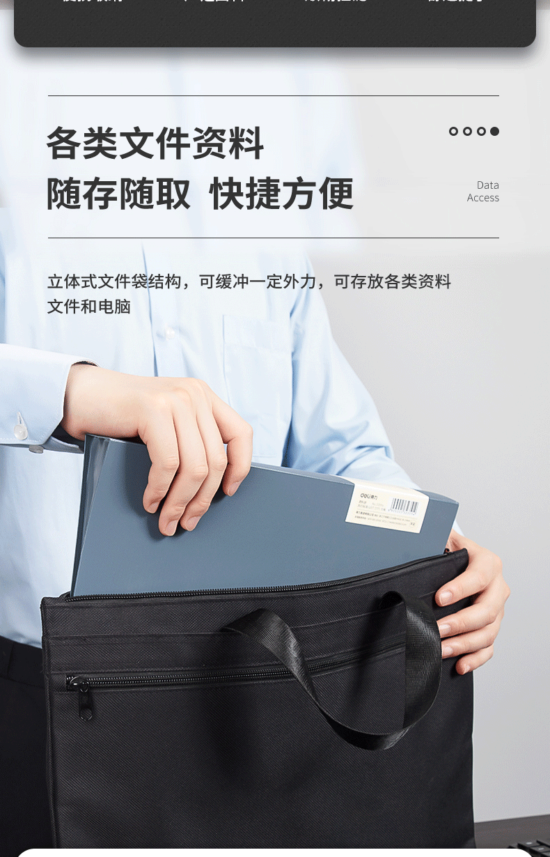 델리 5840 핸드백 대용량 A4 파일 데이터 지퍼 가방 캔버스 핸드백 남성과 여성 스토리지 가방