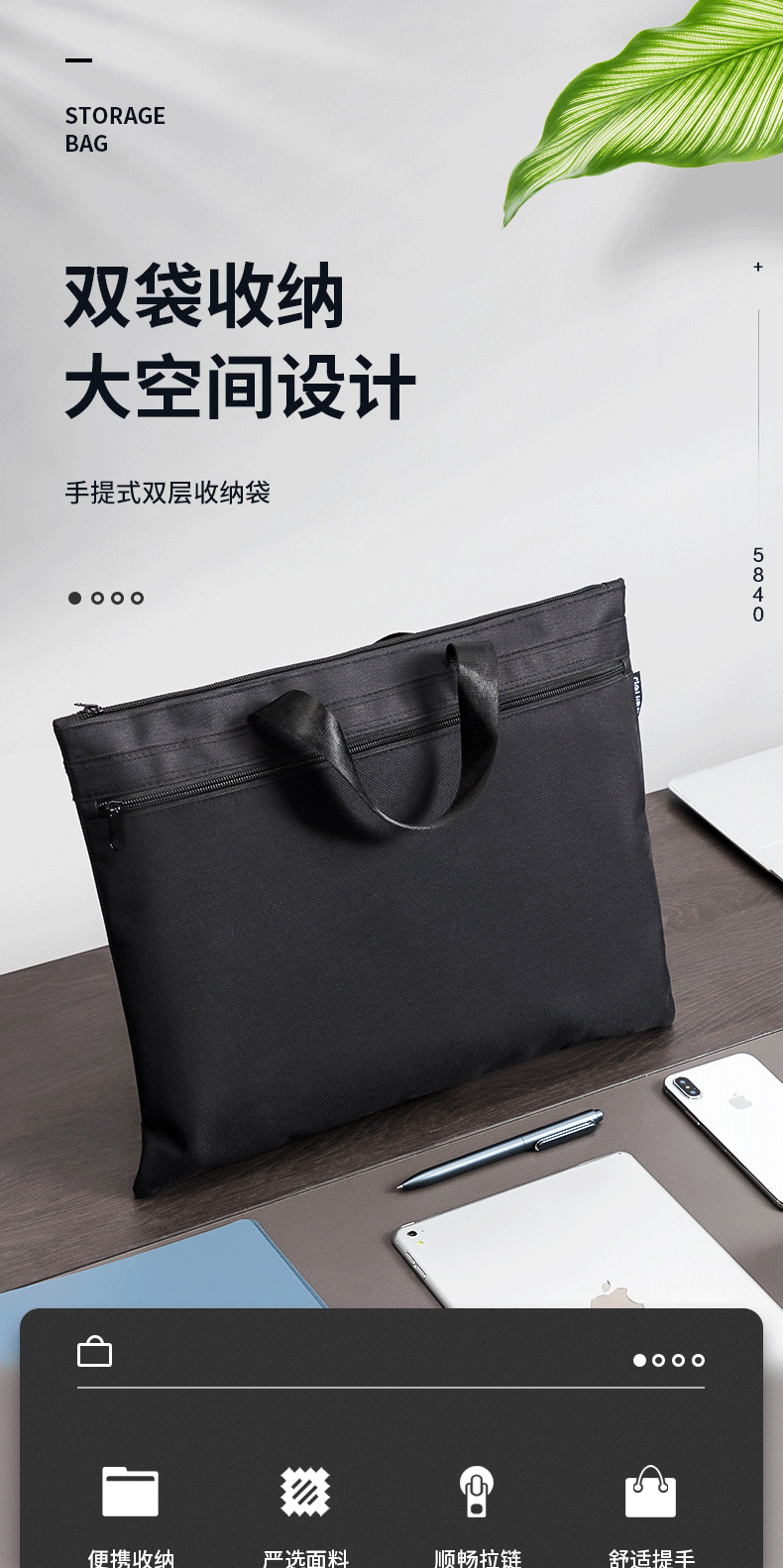 델리 5840 핸드백 대용량 A4 파일 데이터 지퍼 가방 캔버스 핸드백 남성과 여성 스토리지 가방스토어 가기