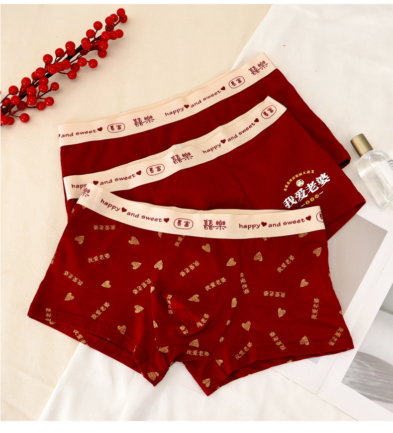 2025 신제품 Benmingnian 남성 속옷 퓨어 코튼 4 코너 바지 솔리드 컬러 레드 복서 반바지 통기성 바닥 바지