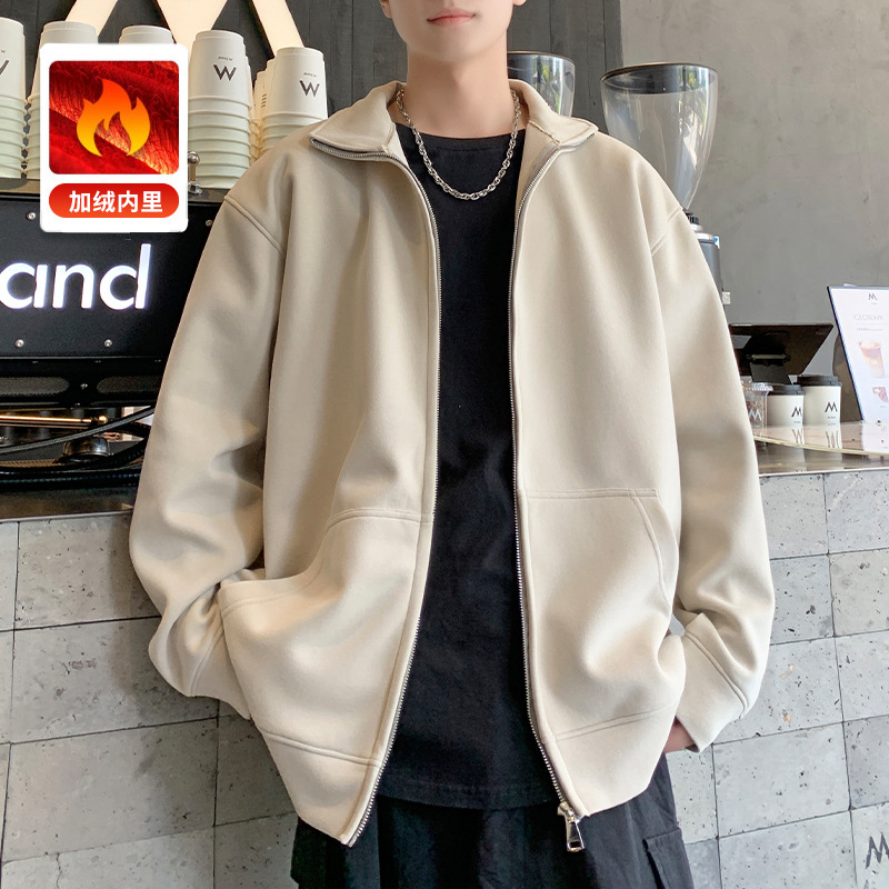 2025 신상 남성용 가을 겨울 기모 스웨트셔츠 스탠드 칼라 남성 상의 가을 루즈핏 스포츠 긴팔 남성복