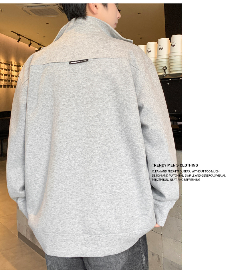 2025 신상 남성용 가을 겨울 기모 스웨트셔츠 스탠드 칼라 남성 상의 가을 루즈핏 스포츠 긴팔 남성복스토어 가기