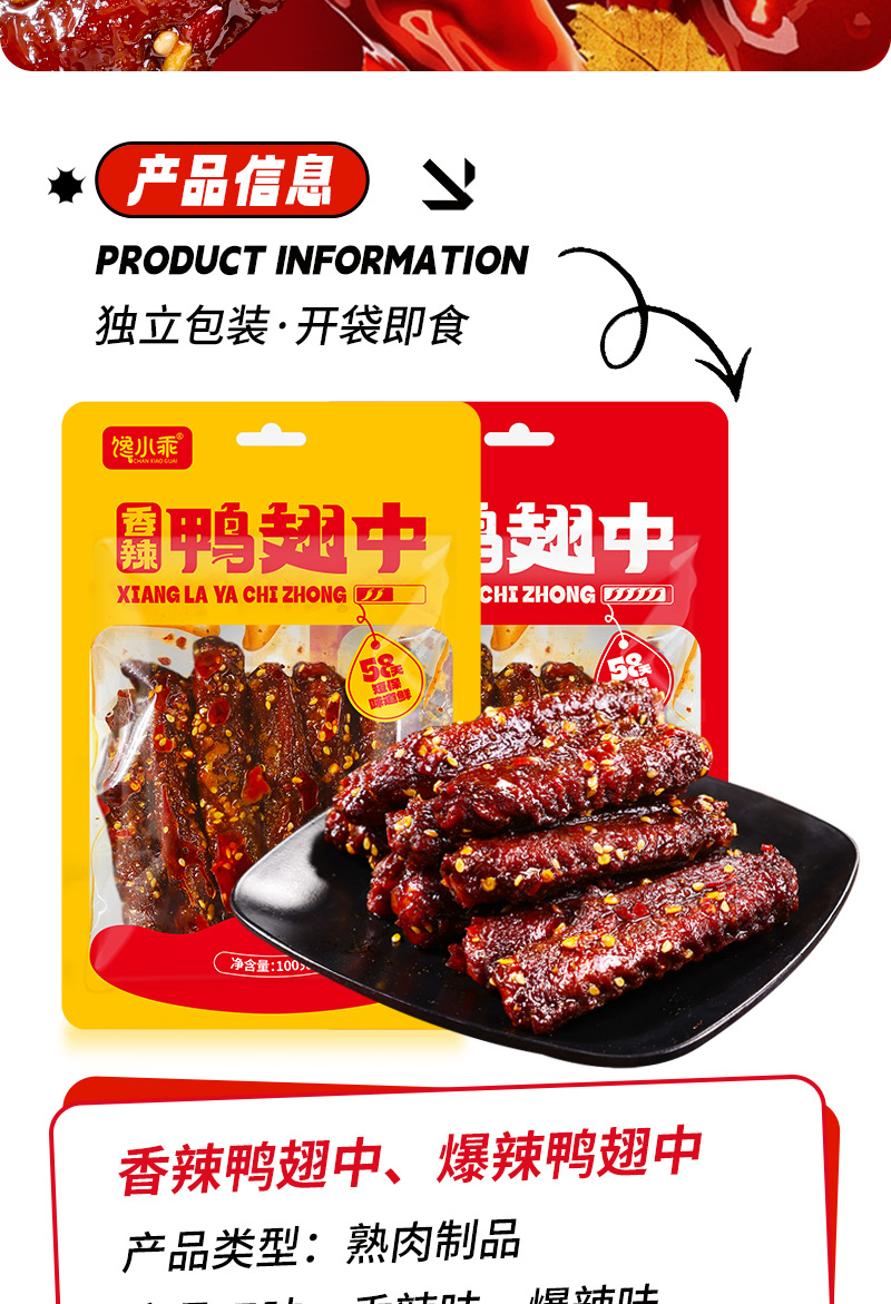 [매운 오리 날개] 찬 샤오구 아이 오리 고기 제품 요리 식품, 포도주 및 야채, 쫓는 드라마 스낵, 독립 포장스토어 가기