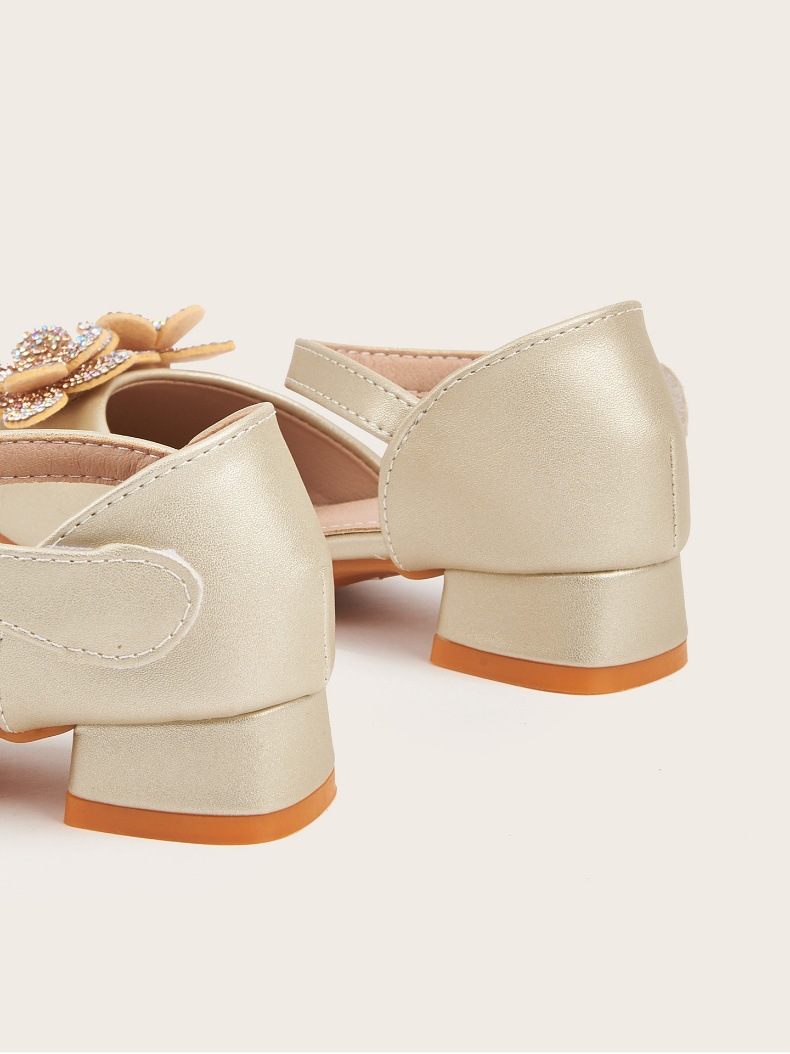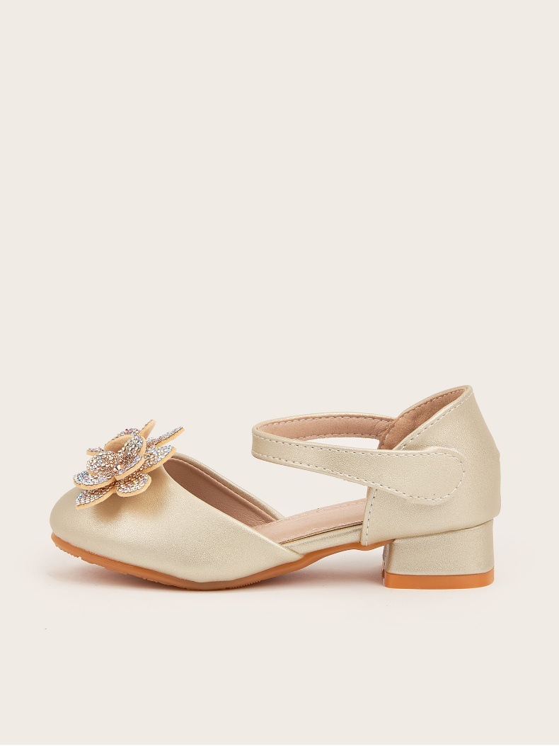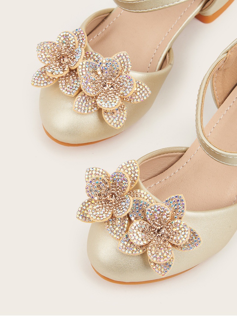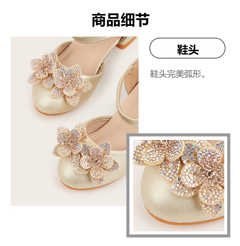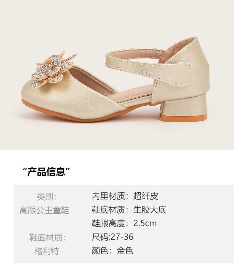 2026 여아 하이힐 공주 공연 신발, 큐빅 장식 꽃모양 어린이 구두, 귀엽고 세련된 통굽 작은 공주님 신발