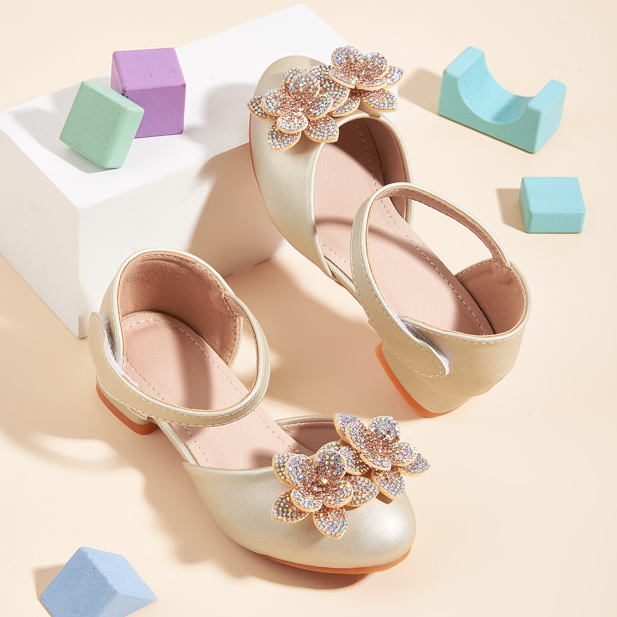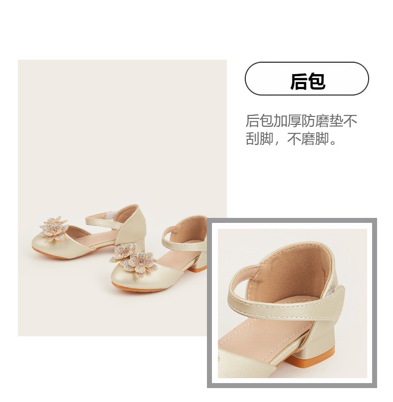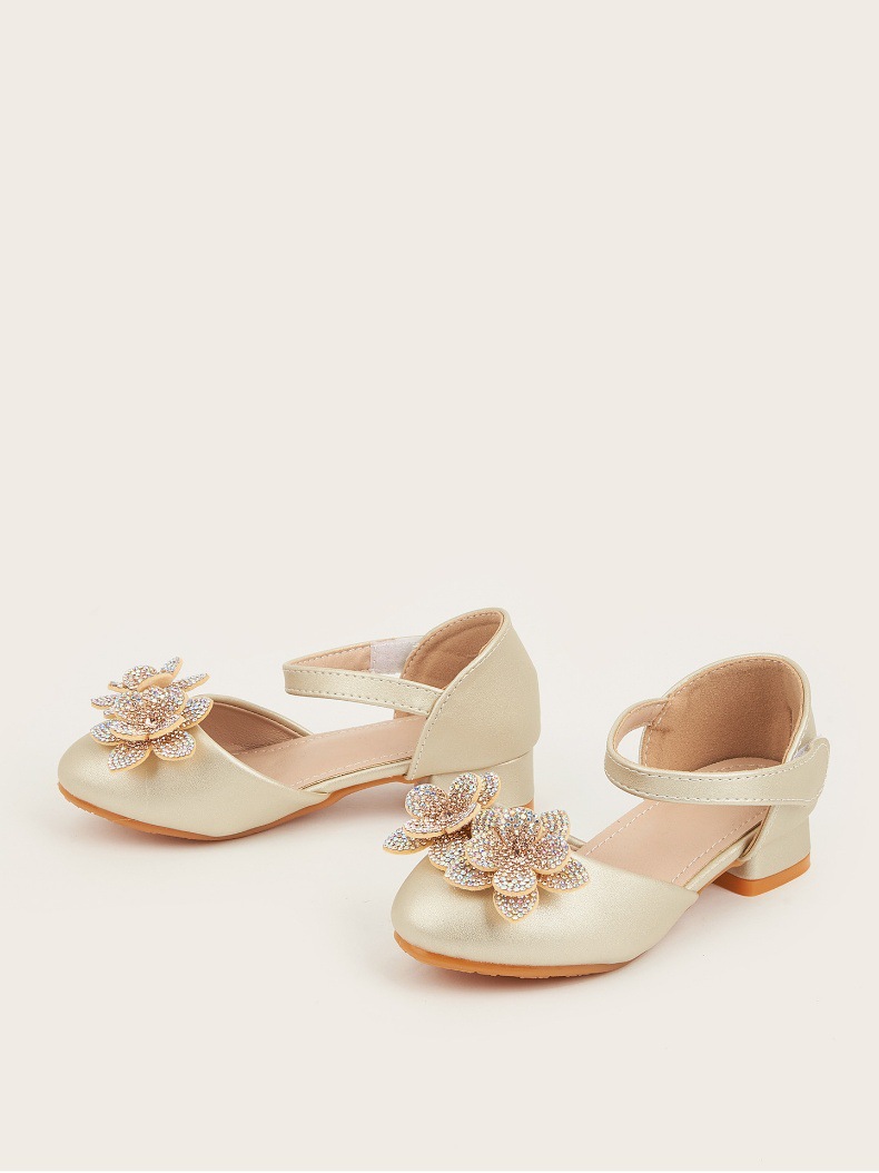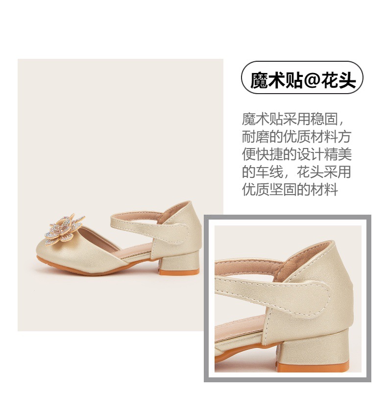 2026 여아 하이힐 공주 공연 신발, 큐빅 장식 꽃모양 어린이 구두, 귀엽고 세련된 통굽 작은 공주님 신발