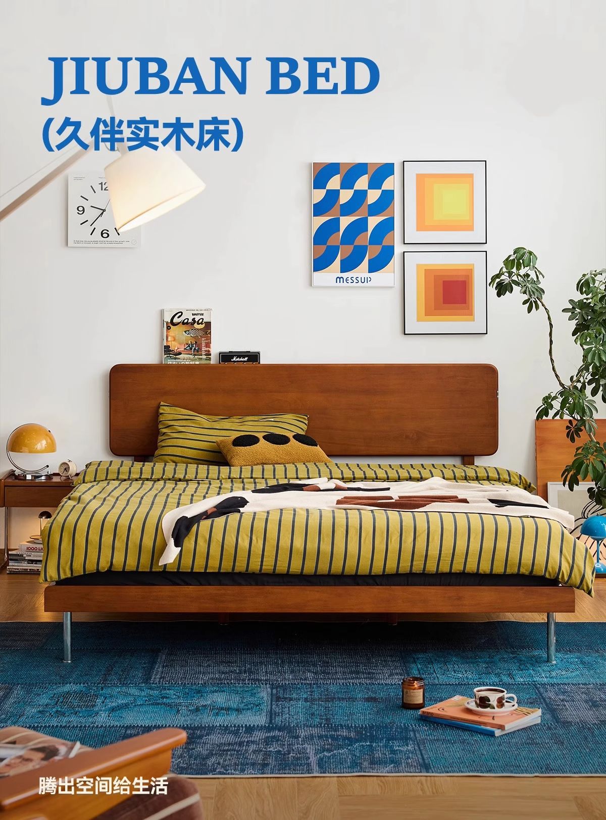 골동품 스타일 단단한 나무 침대 1.8 m 북유럽 스타일 홈 레트로 더블 침대 1.5 m 침실 싱글 침대스토어 가기