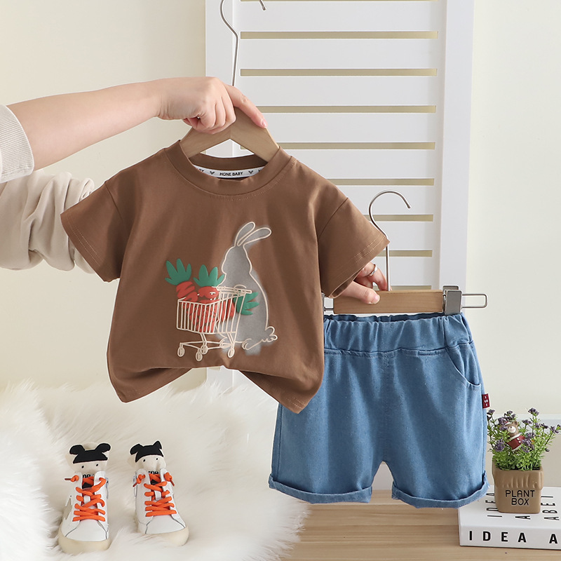 2025 새로운 여름 아동복 소년 소녀 짧은 소매 세트 아기 캐주얼 반바지 2 종 머리카락 세트스토어 가기