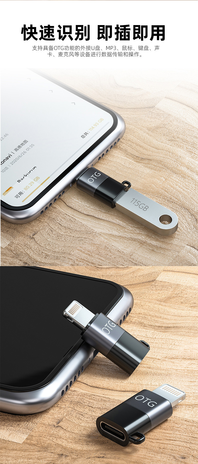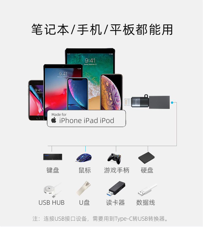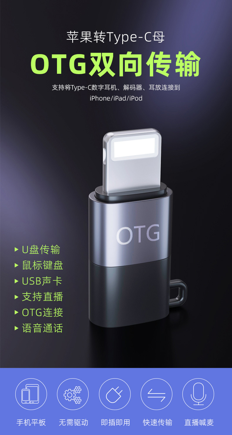 애플에서 타입-C로의 어댑터는 휴대폰, 태블릿, 무선 마이크, 라이브 방송 변환기에 적합합니다.스토어 가기