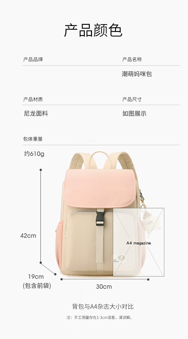 간단한 단색 버클 어깨 미라 가방 2025 새로운 미라 스쿨백 명암 컬러 엄마와 아기 가방 기저귀 패키지