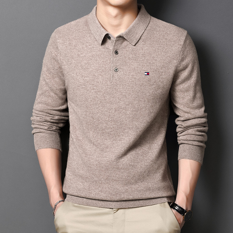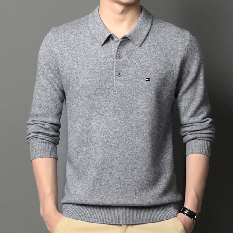 정품 토미 토미 남자의 니트 모직 스웨터 봄과 가을 랩베이스 스웨터 캐주얼 중년 폴로 셔츠스토어 가기
