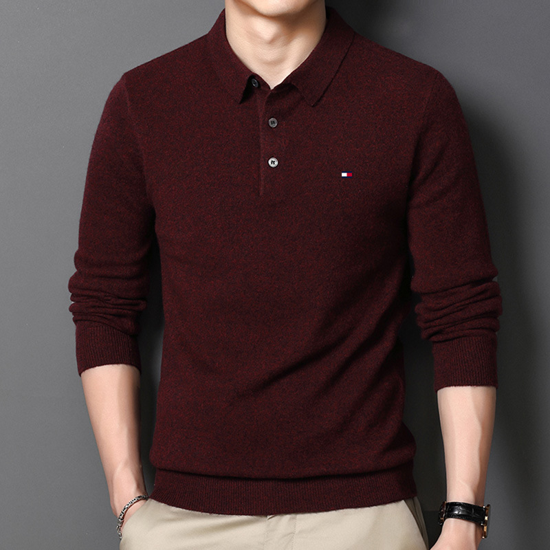 정품 토미 토미 남자의 니트 모직 스웨터 봄과 가을 랩베이스 스웨터 캐주얼 중년 폴로 셔츠