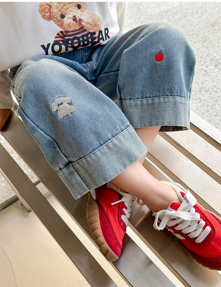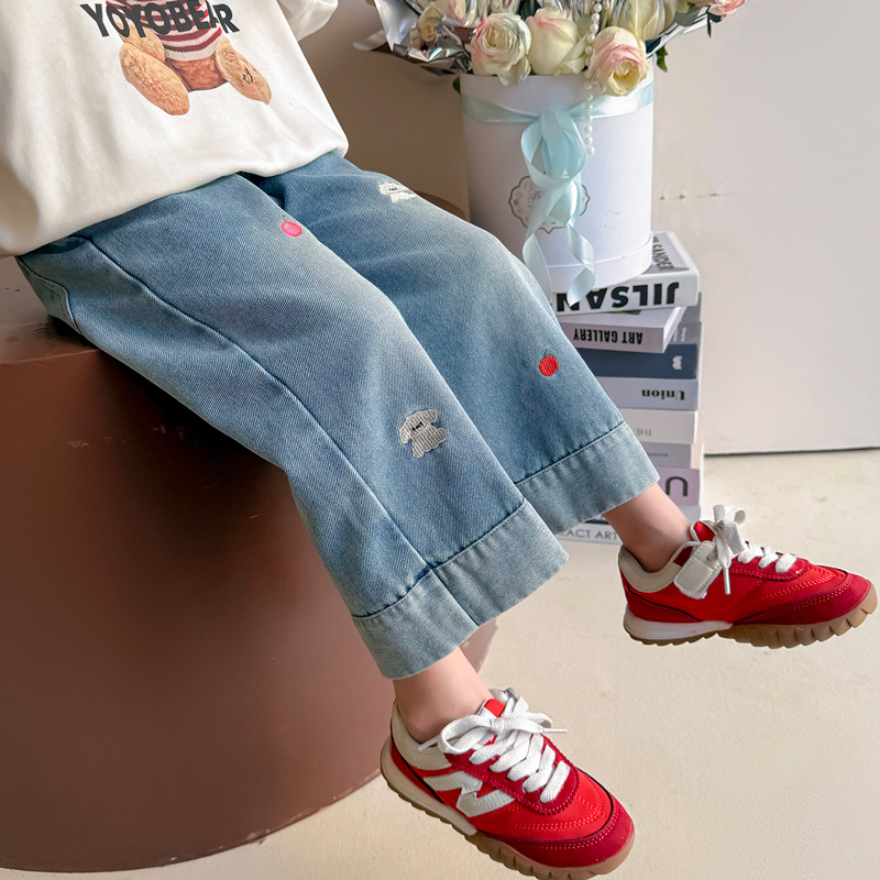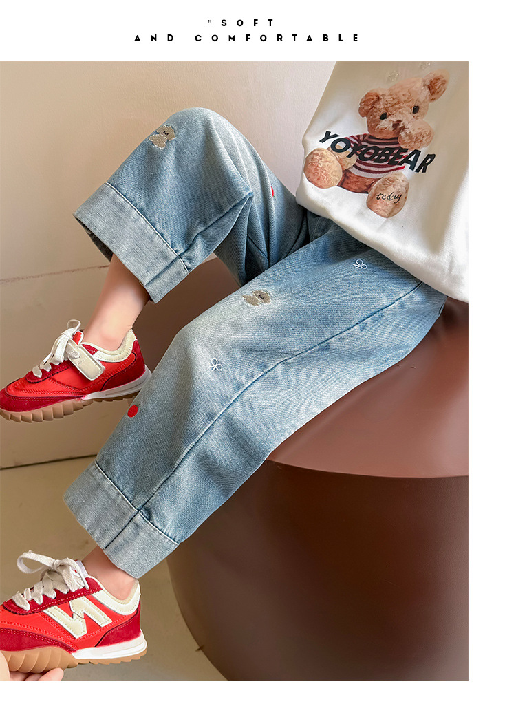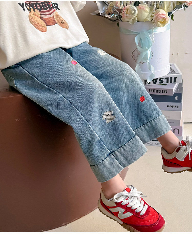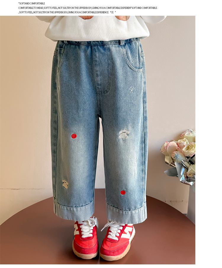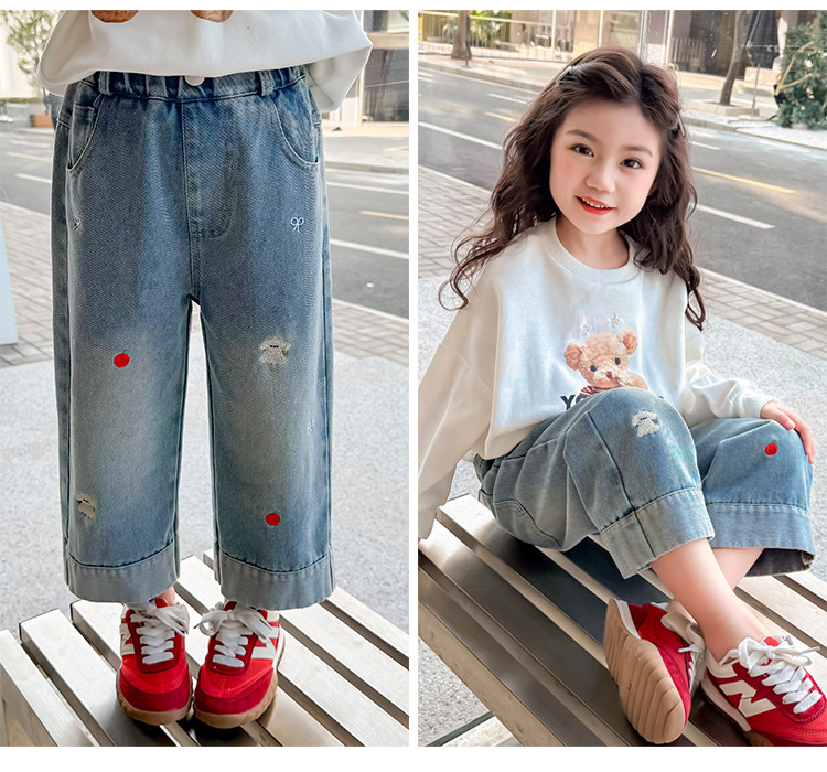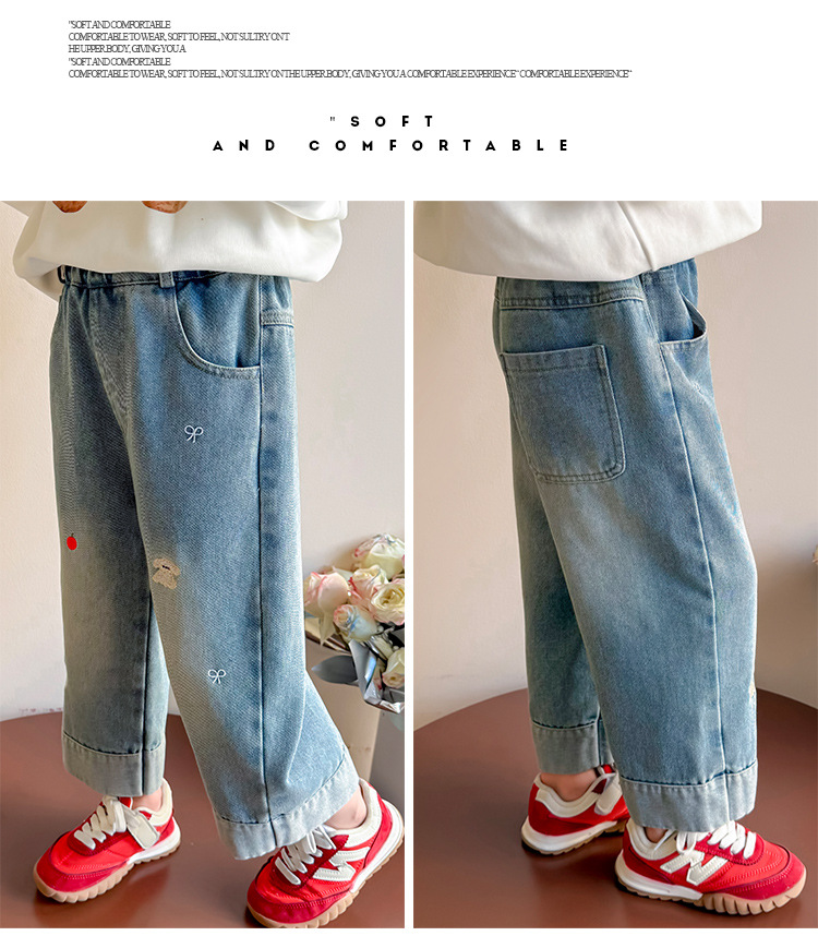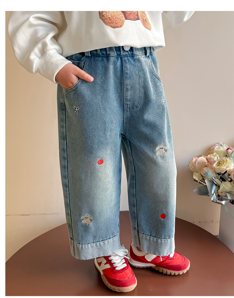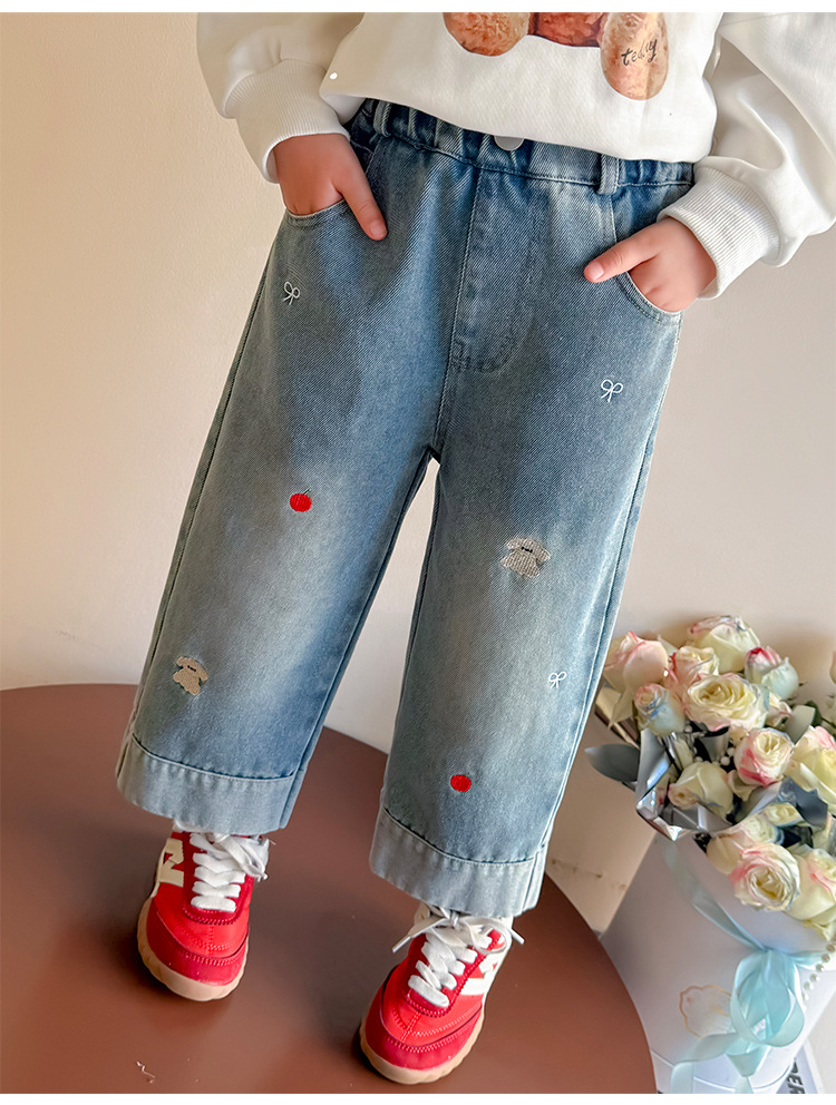 가을 신상 아동 자수 강아지 청바지 2026년 한국판 여아 스트레이트 팬츠 아동복 원피스 도매 유행 상품스토어 가기