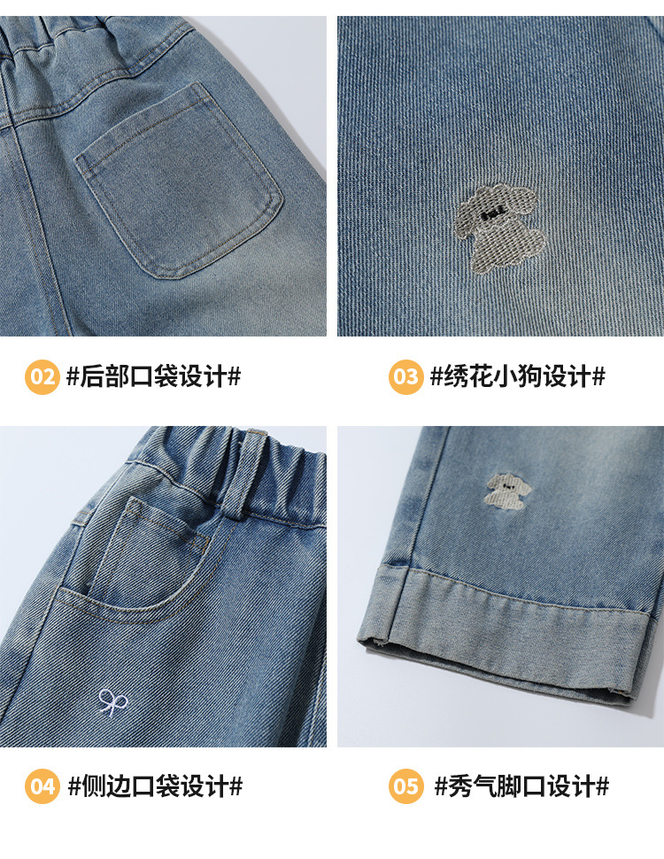 가을 신상 아동 자수 강아지 청바지 2026년 한국판 여아 스트레이트 팬츠 아동복 원피스 도매 유행 상품