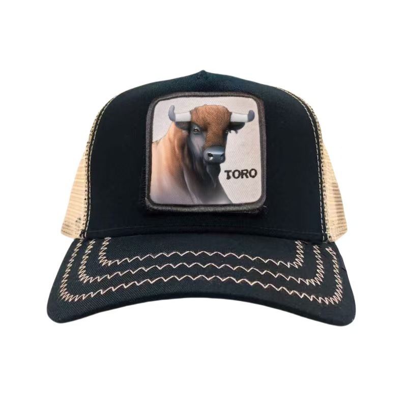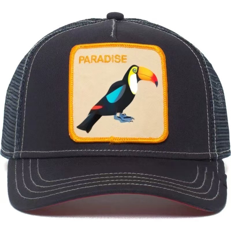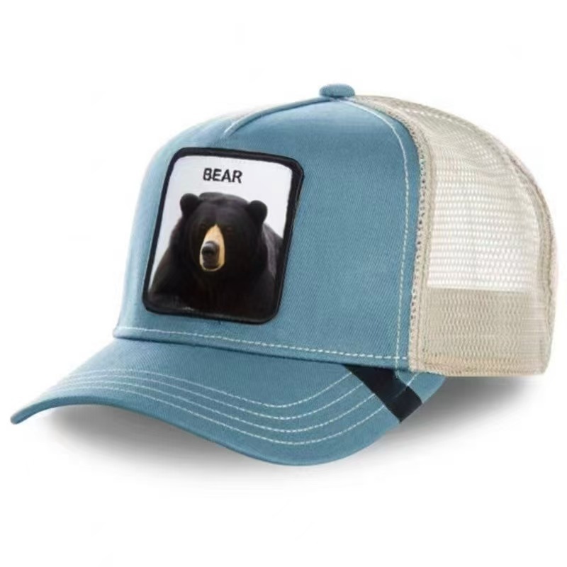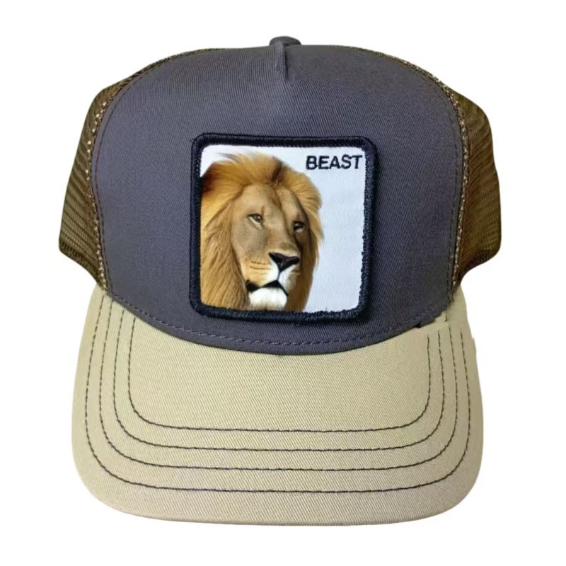 [국경 간 폭발] 동물 야구 모자 선 스크린 메쉬 자수 트럭 운전사 검은 표범 수탉 사자 모자